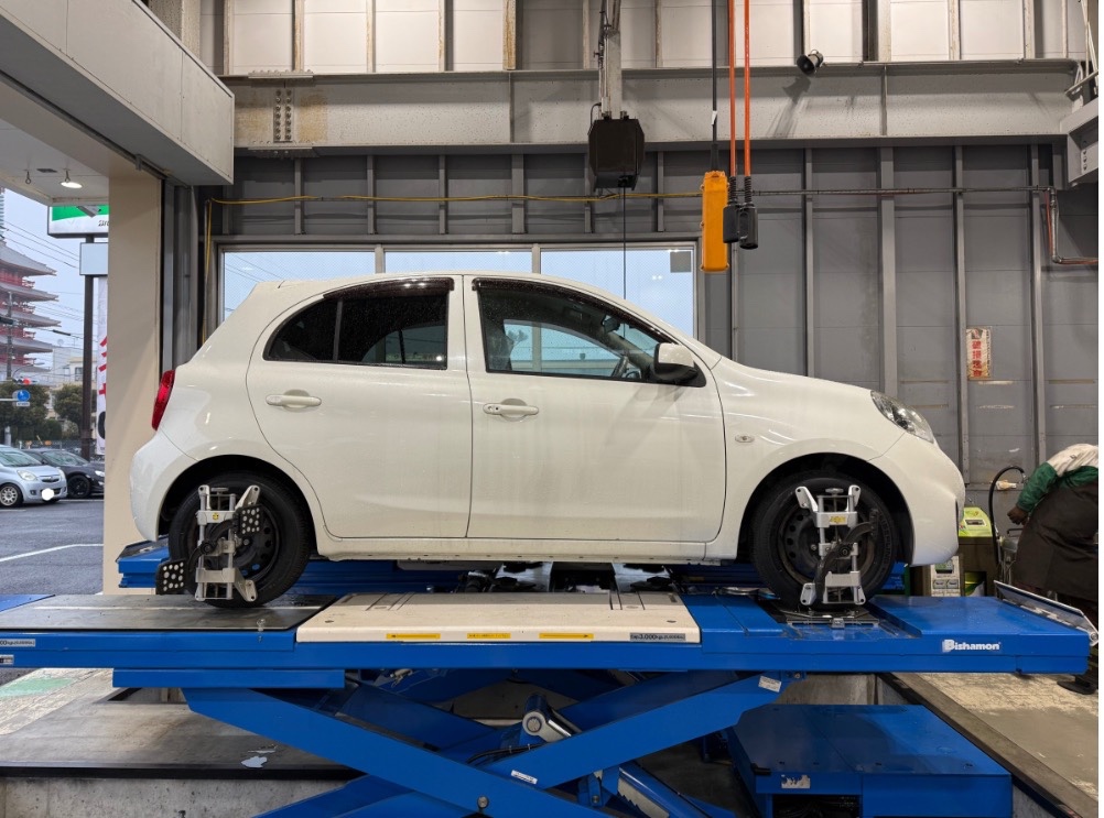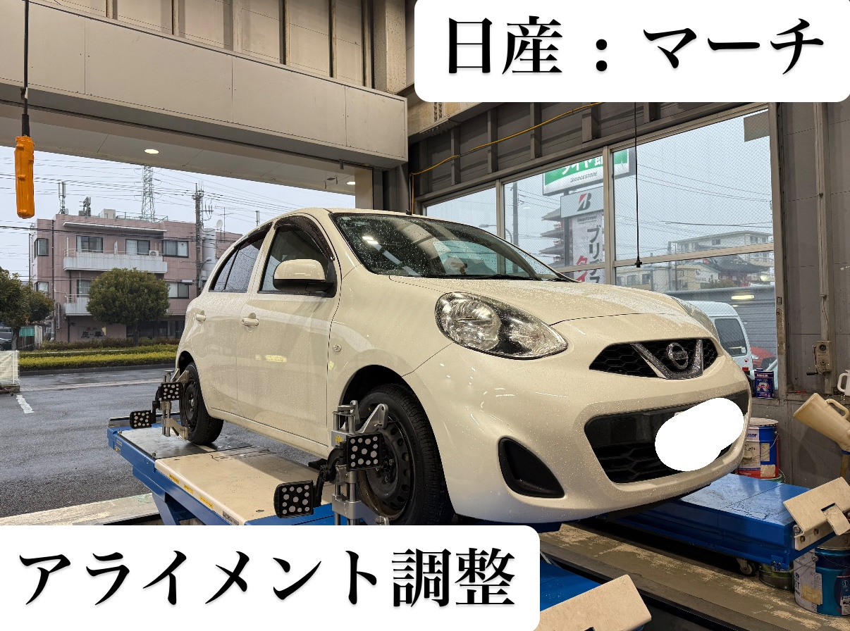 本日は日産 : マーチのアライメント調整をさせていただきましたのでご紹介します!