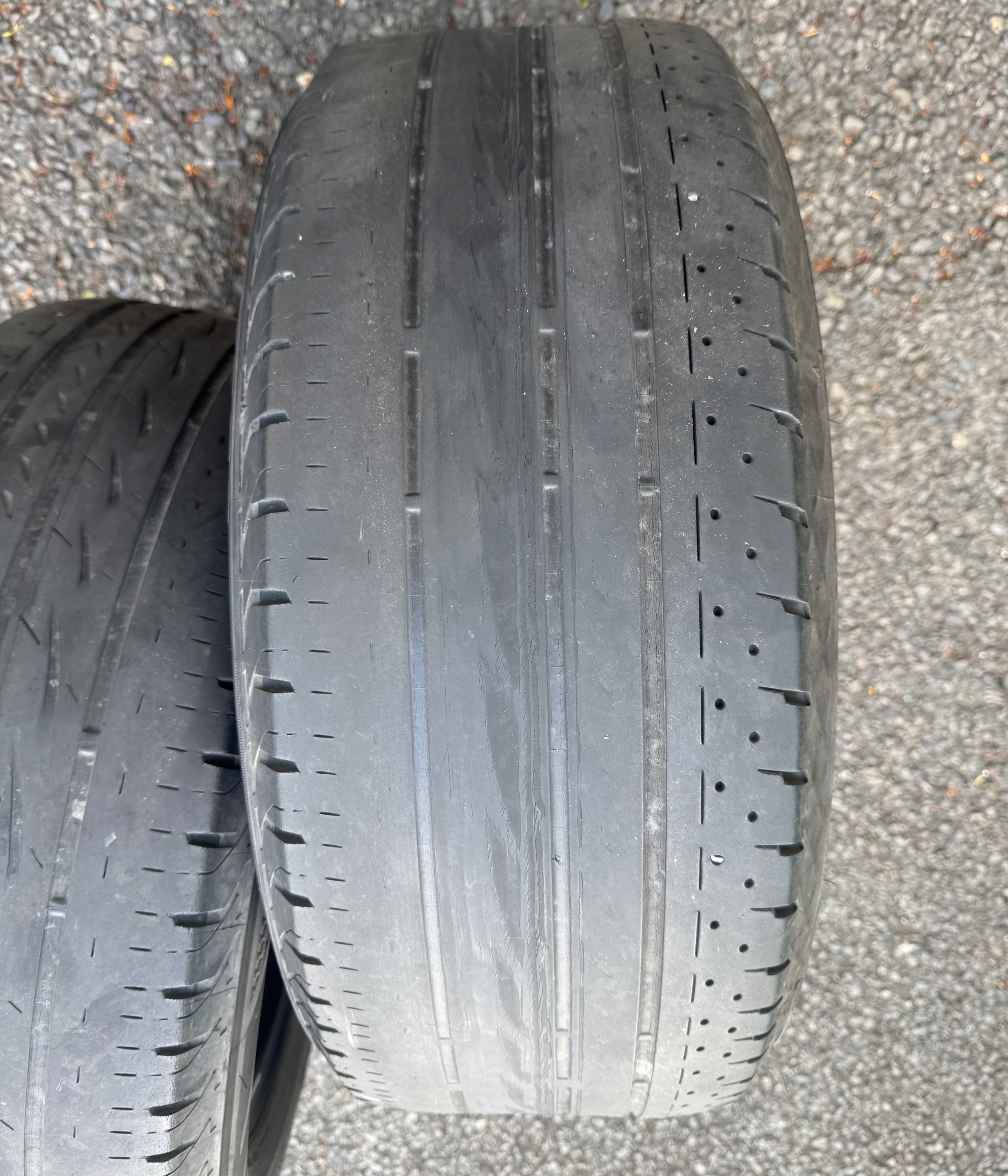 アライメント調整する前の、タイヤの偏摩耗になります↓