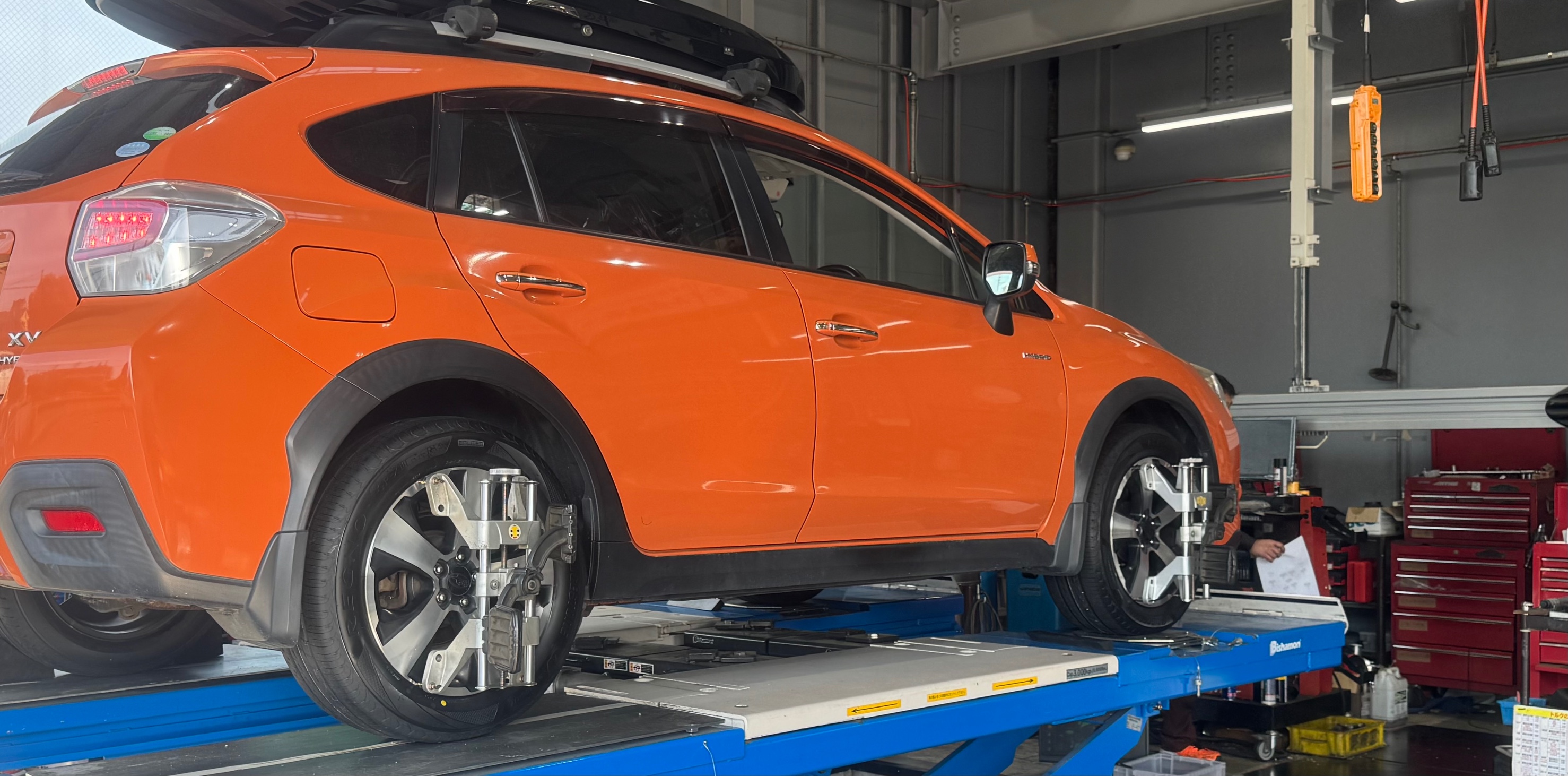 本日、SUBARU インプレッサXVのアライメント調整