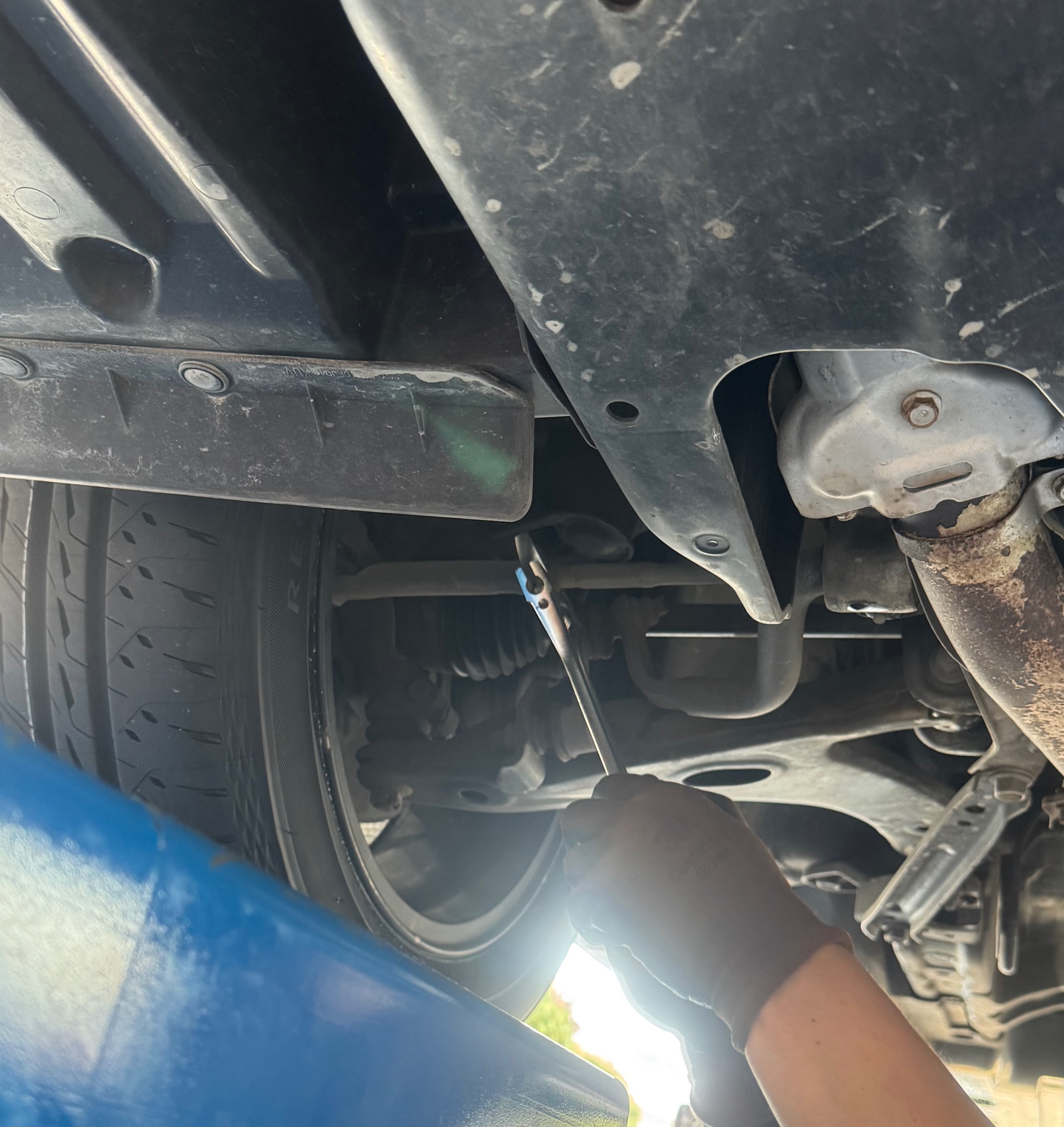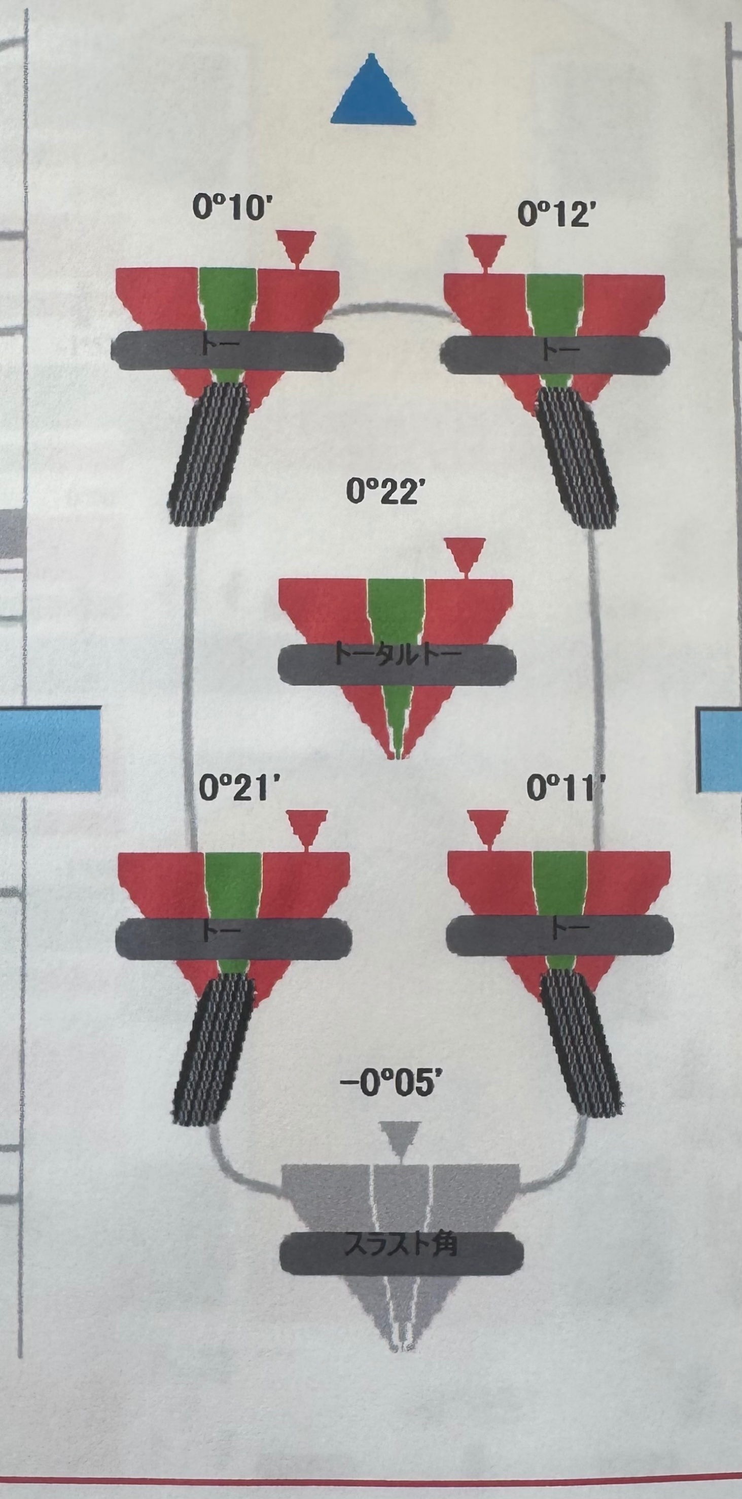 前後のトーインを0度に調整して無事に作業完了です。