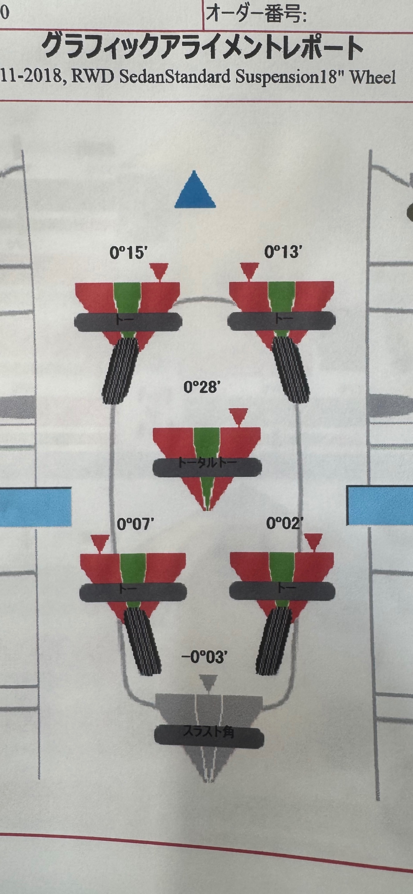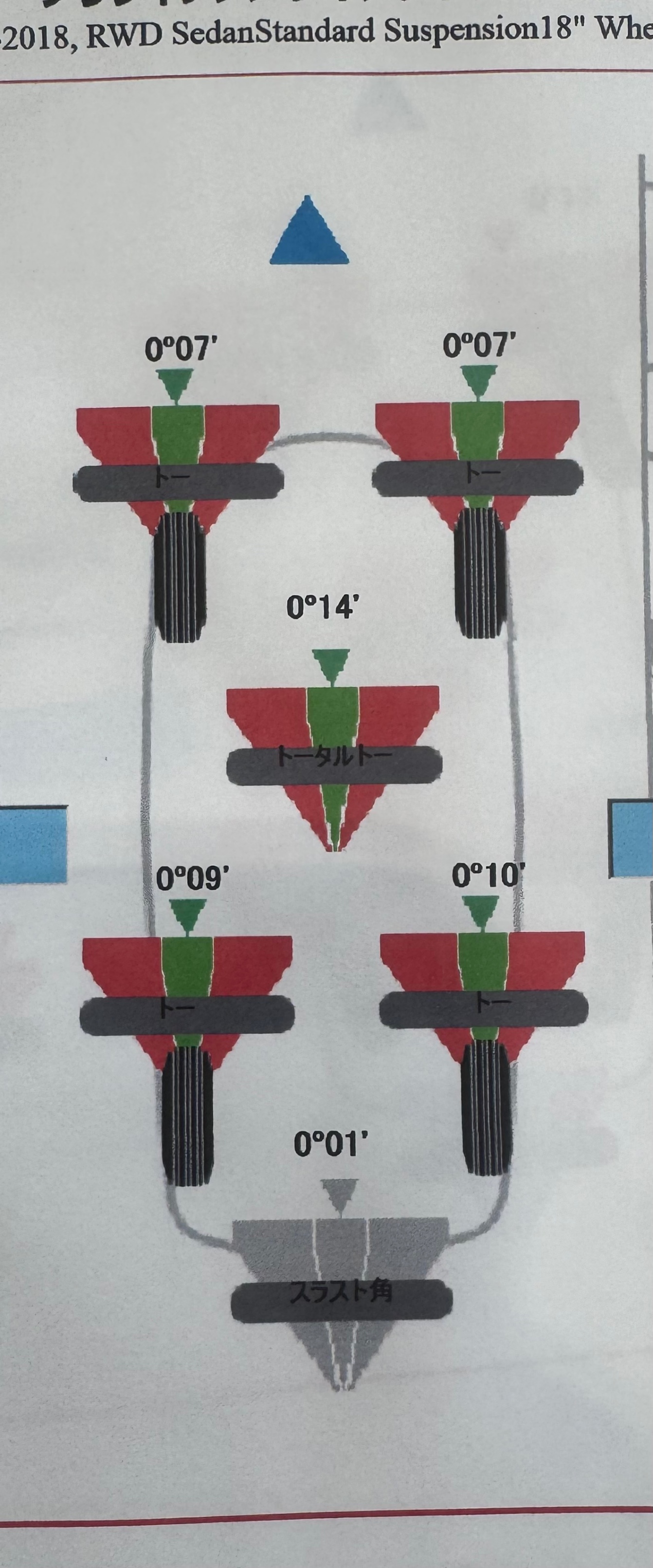 タイヤの向きがフロントトーイン、リアトーアウトだったのが