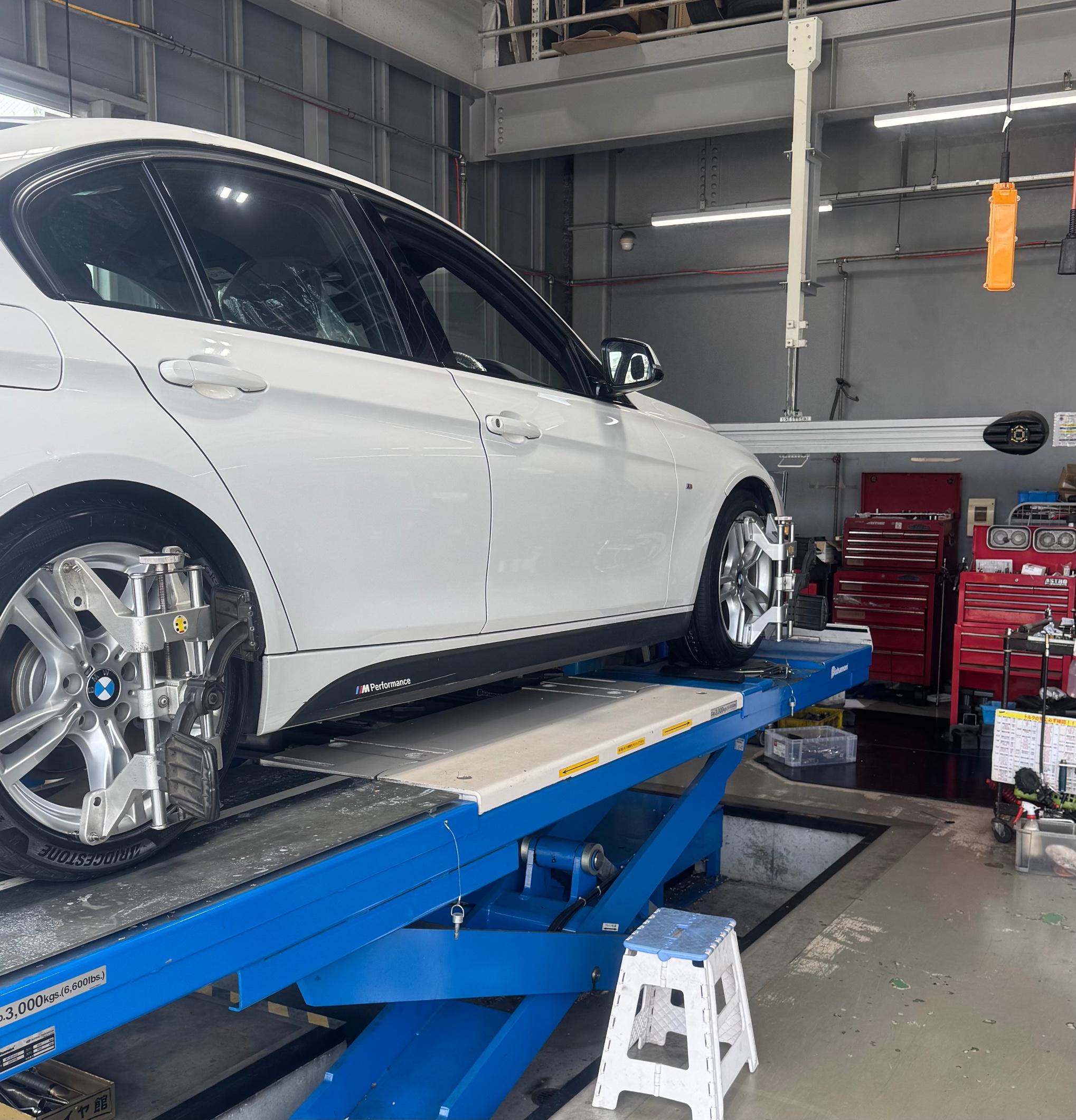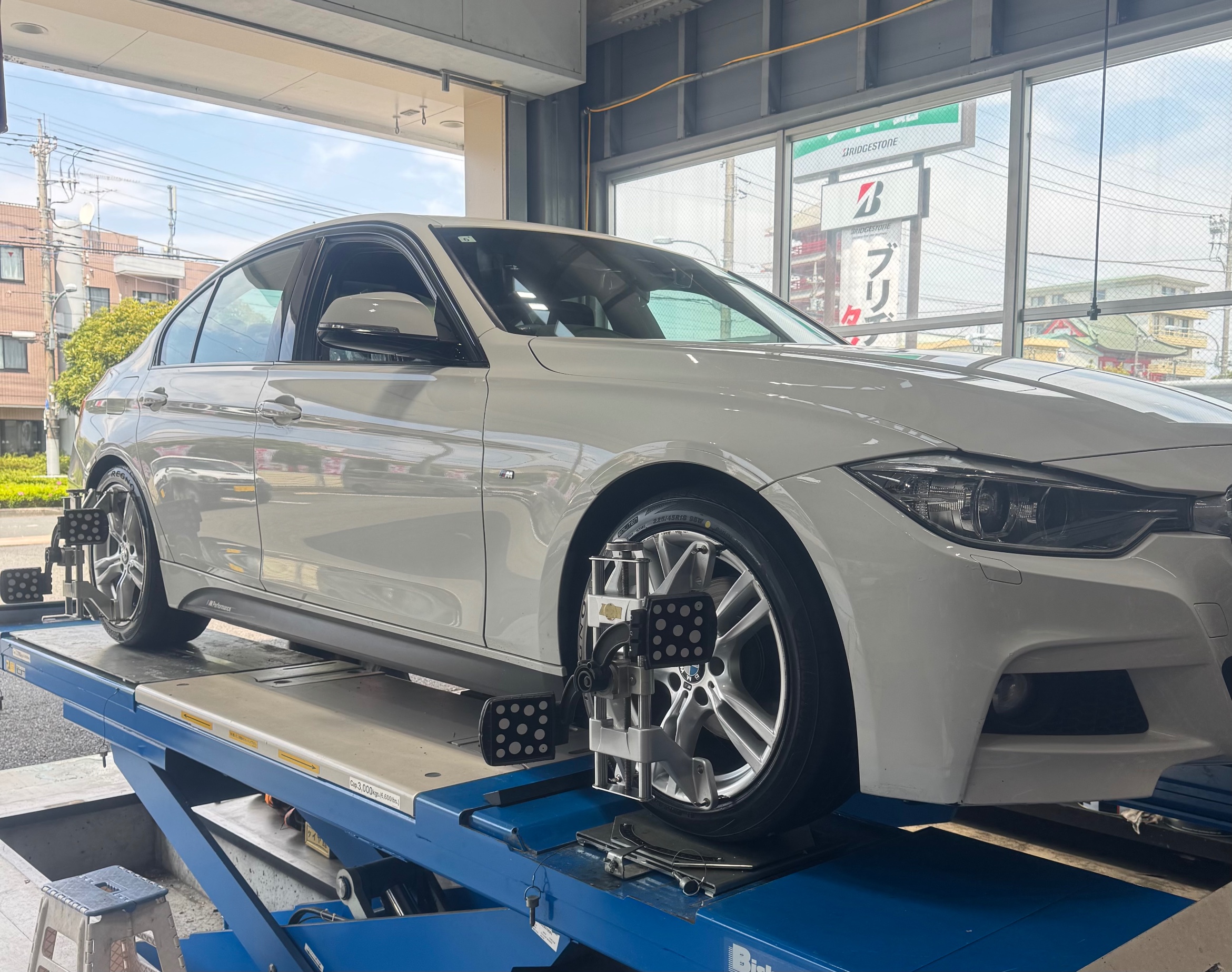 本日、BMW3シリーズのアライメント調整作業をご紹介して行きたいと思います。
