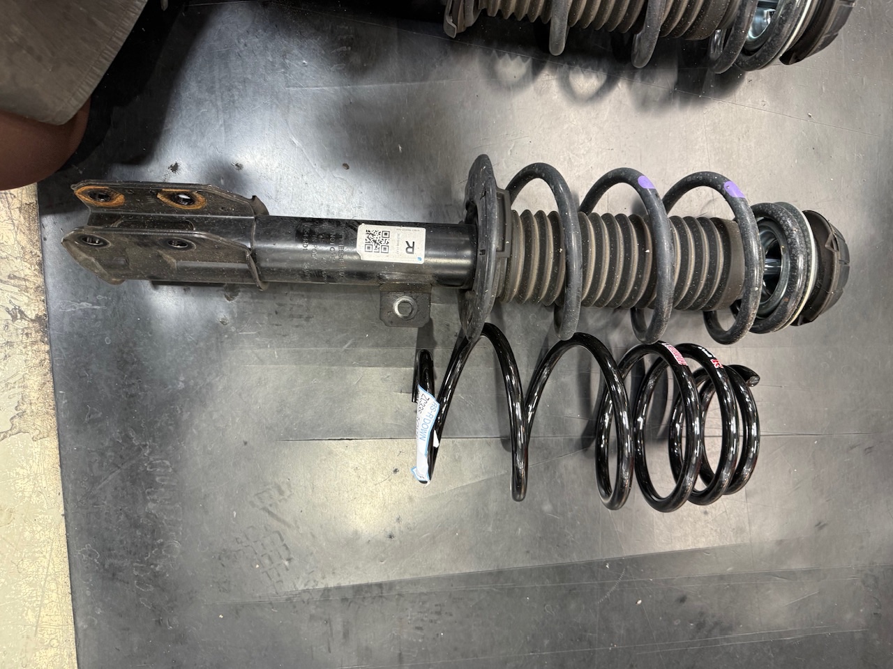 フロントはショックアブソーバーと一体型になっておりますので、専用工具を用いて、スプリングを入れ替えます!!