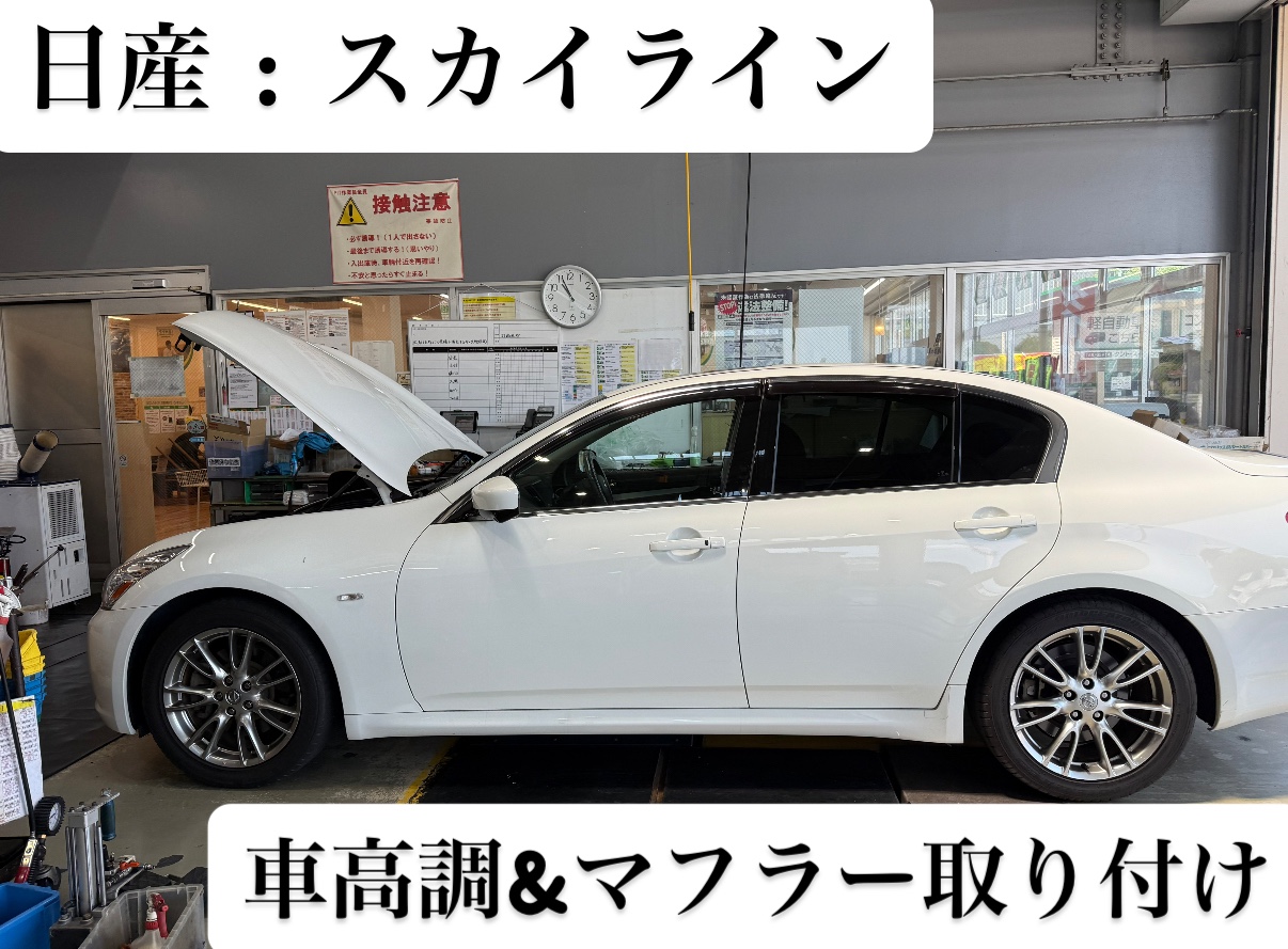 本日は、日産 : スカイラインの車高調とマフラーを取り付けさせていただきましたのでご紹介します!!