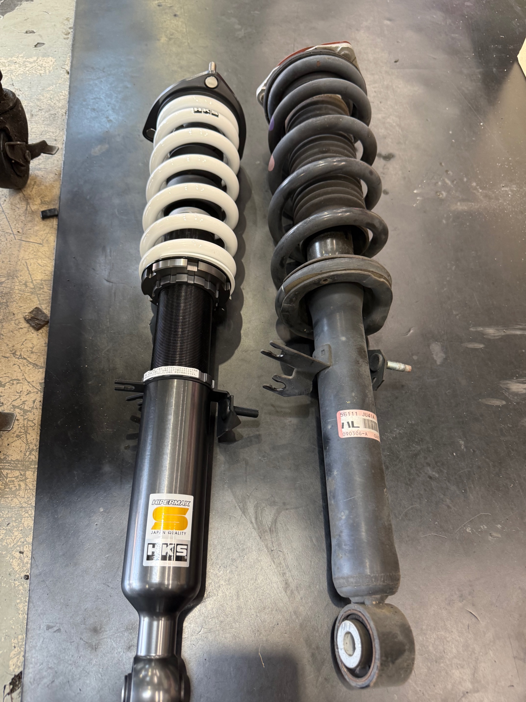 純正のサスペンションとHKSの車高調を比較してみた写真になります!!
