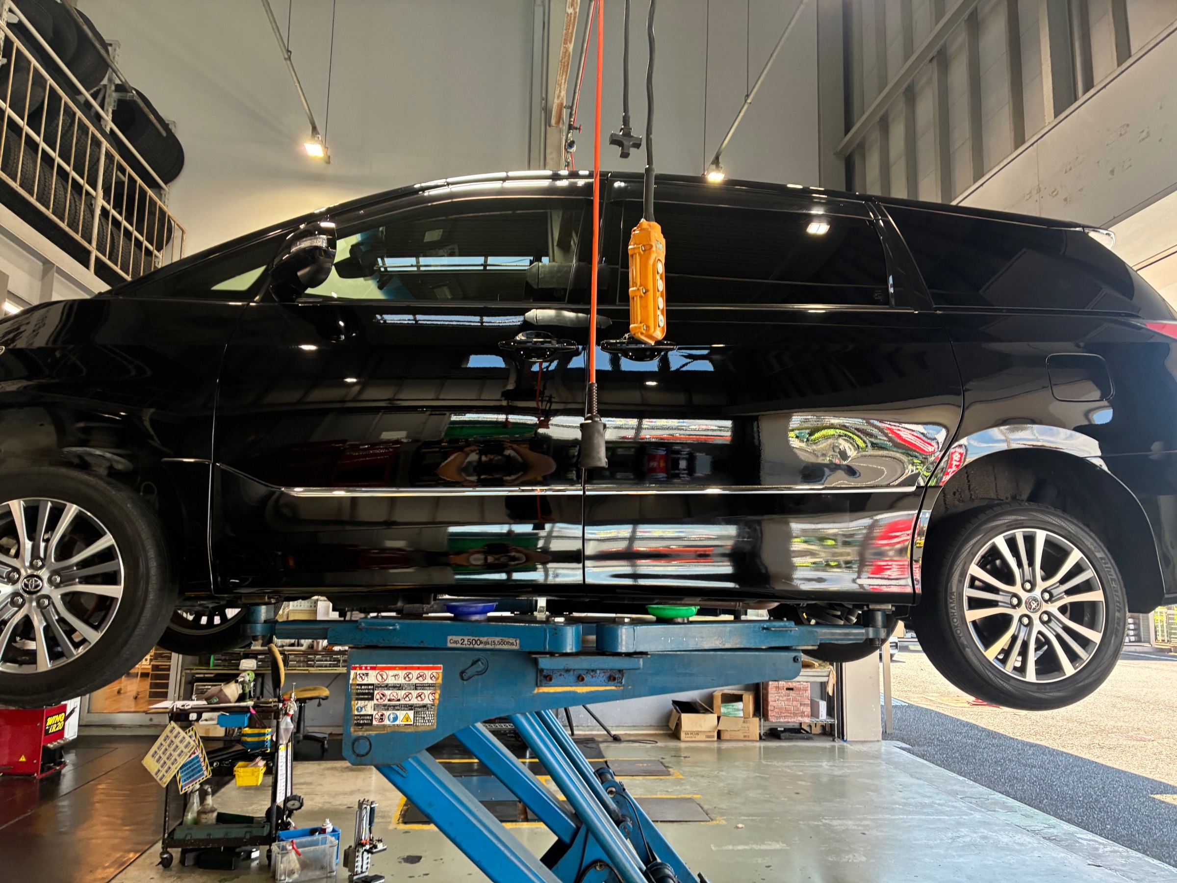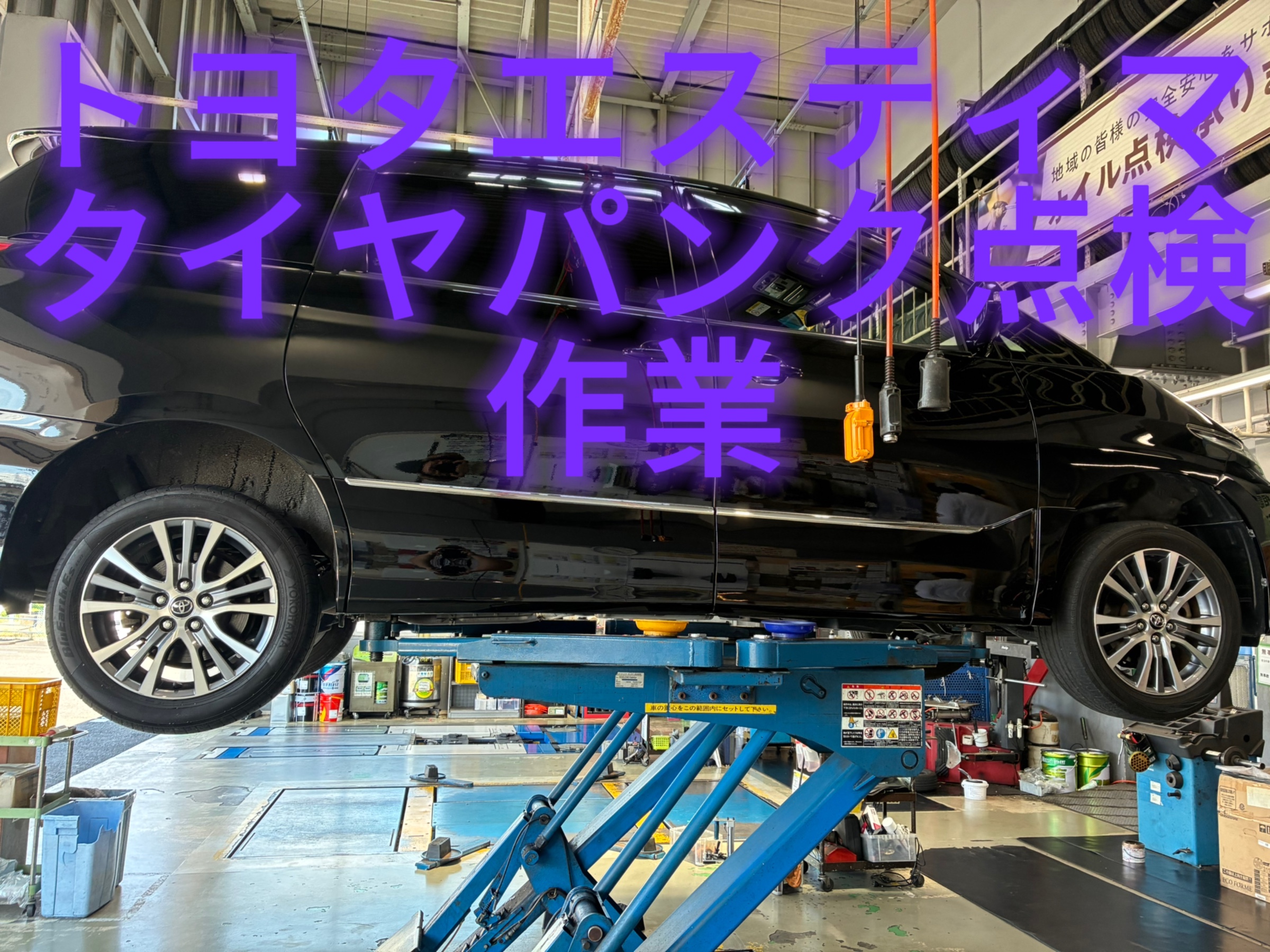 トヨタエスティマタイヤパンク点検作業です。