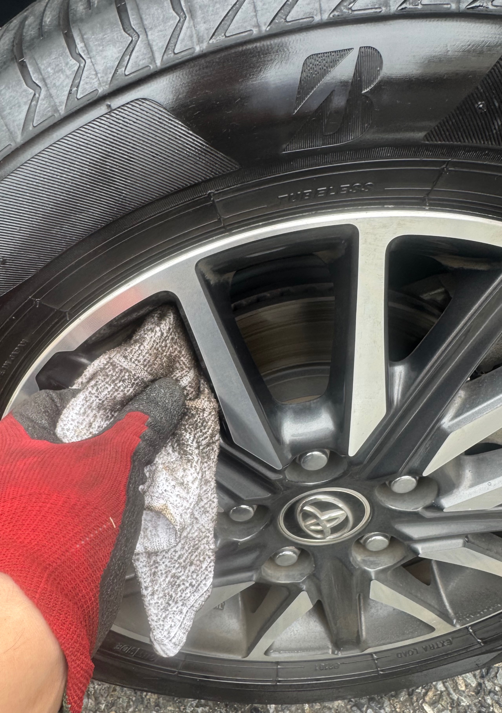 最後に、タイヤWax、ホイール清掃を行い作業完了に