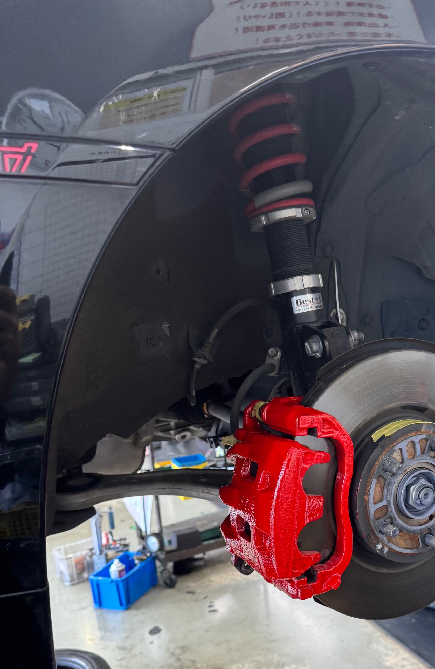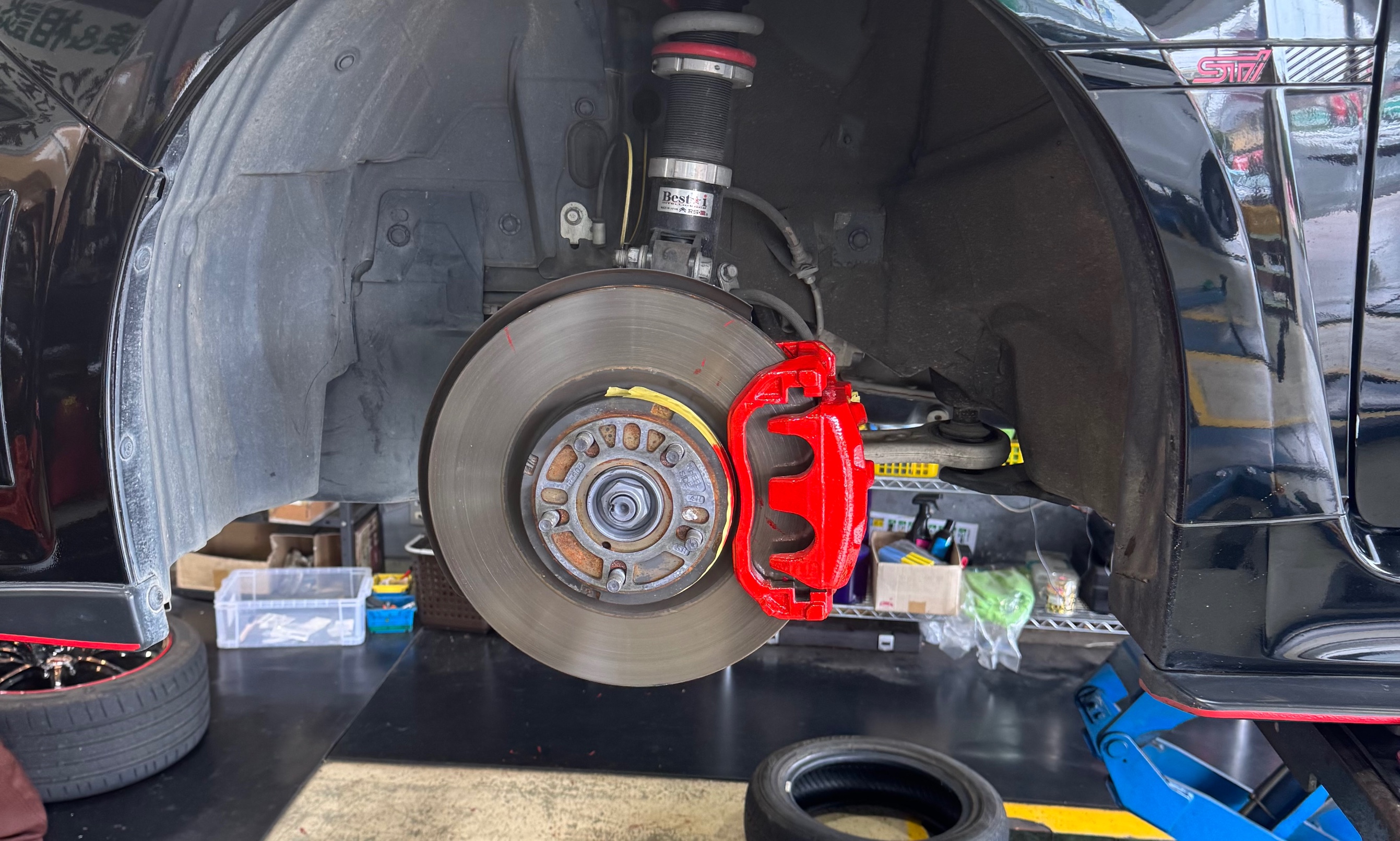 本日、SUBARU WRX STIのキャリパー塗装