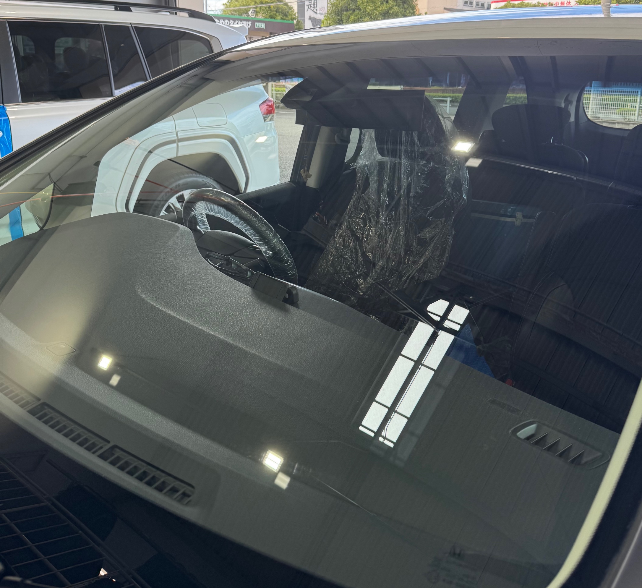 フロントガラスに撥水コーティングを施工しました。