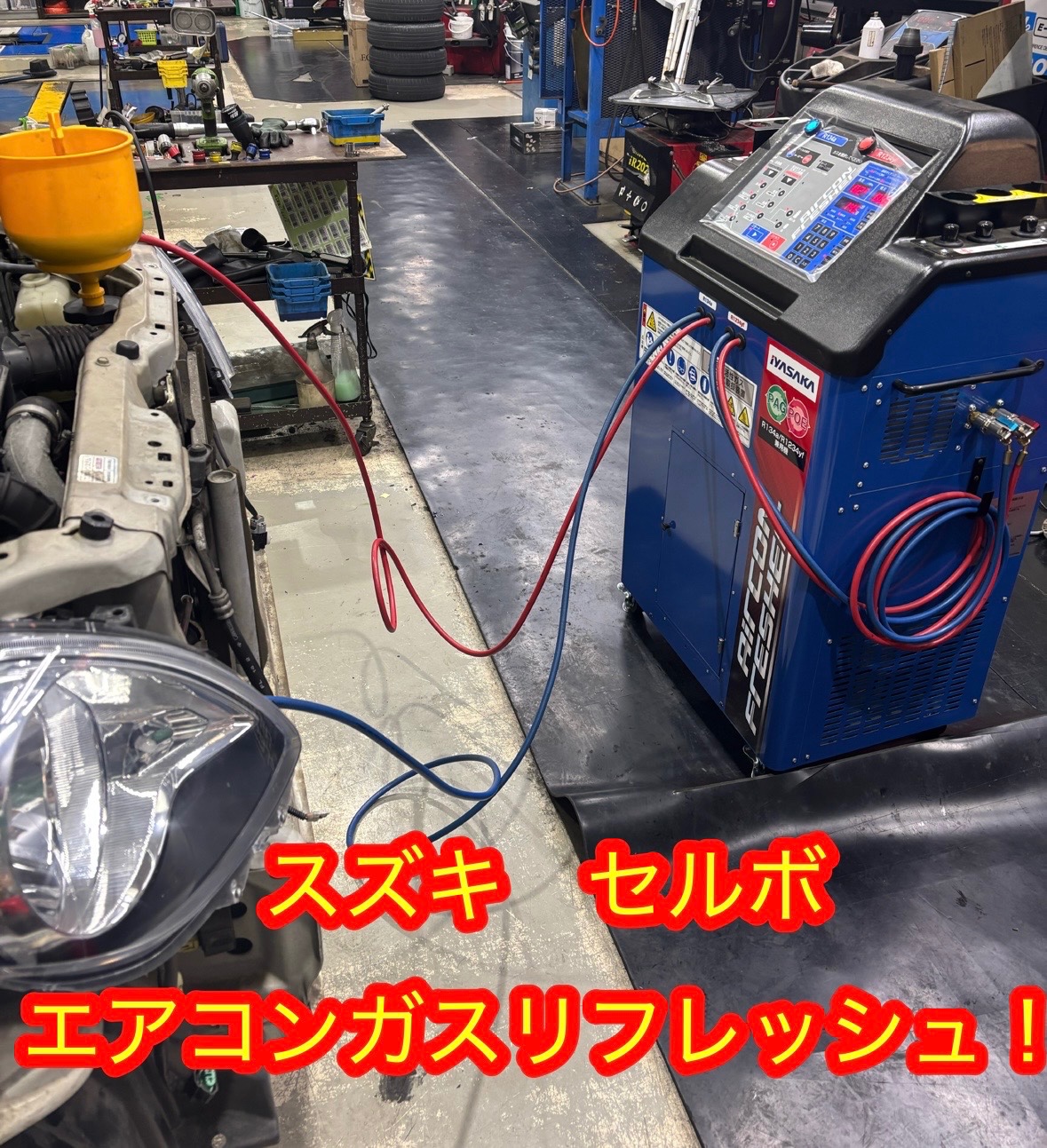 本日はこれからの時期にオススメのメンテナンス、(スズキ セルボ)エアコンガスリフレッシュ作業を実施しました!