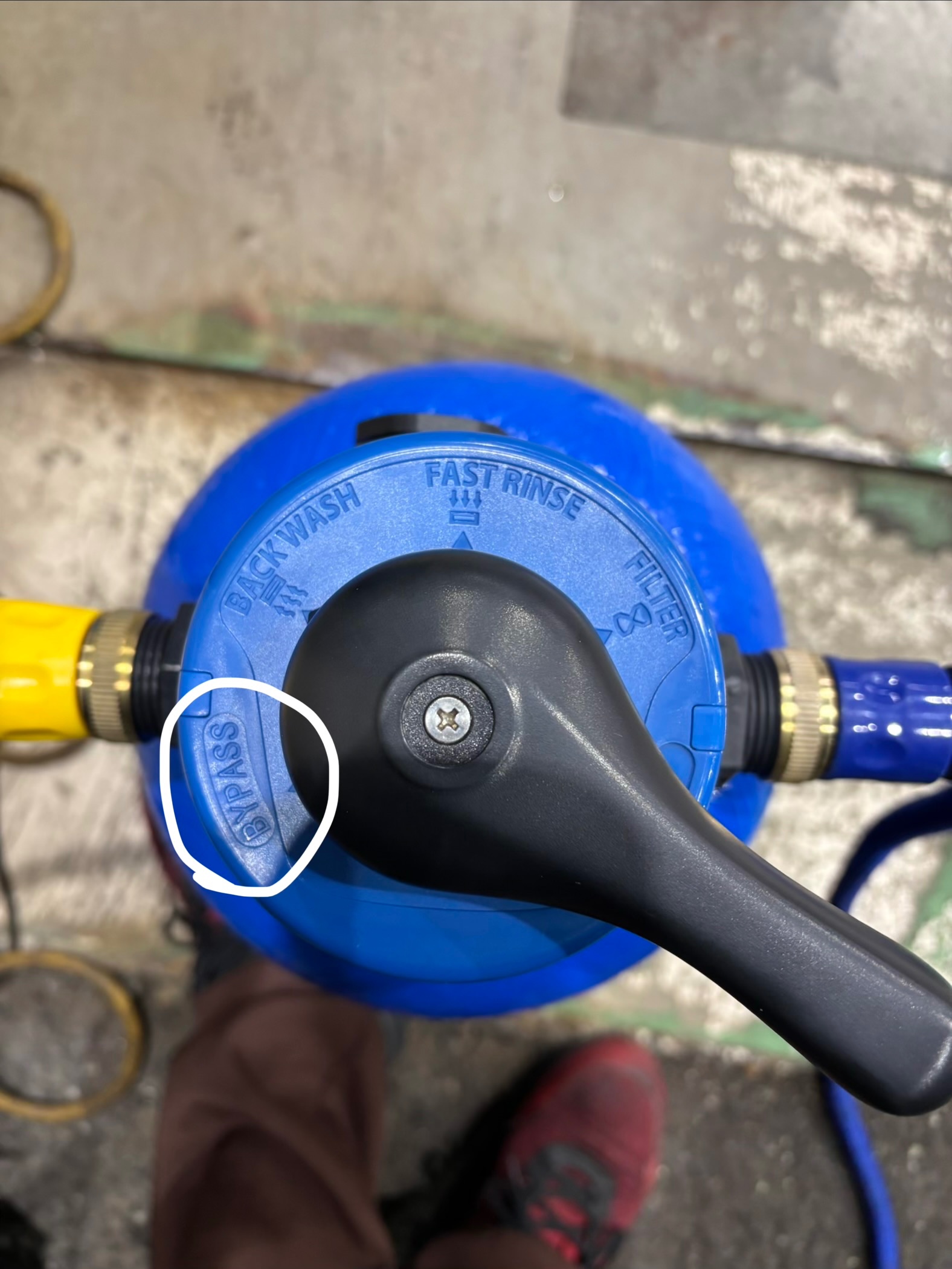車を洗い始めていきますが、最初に流す時は水道水モード(BYPASS)で流します。