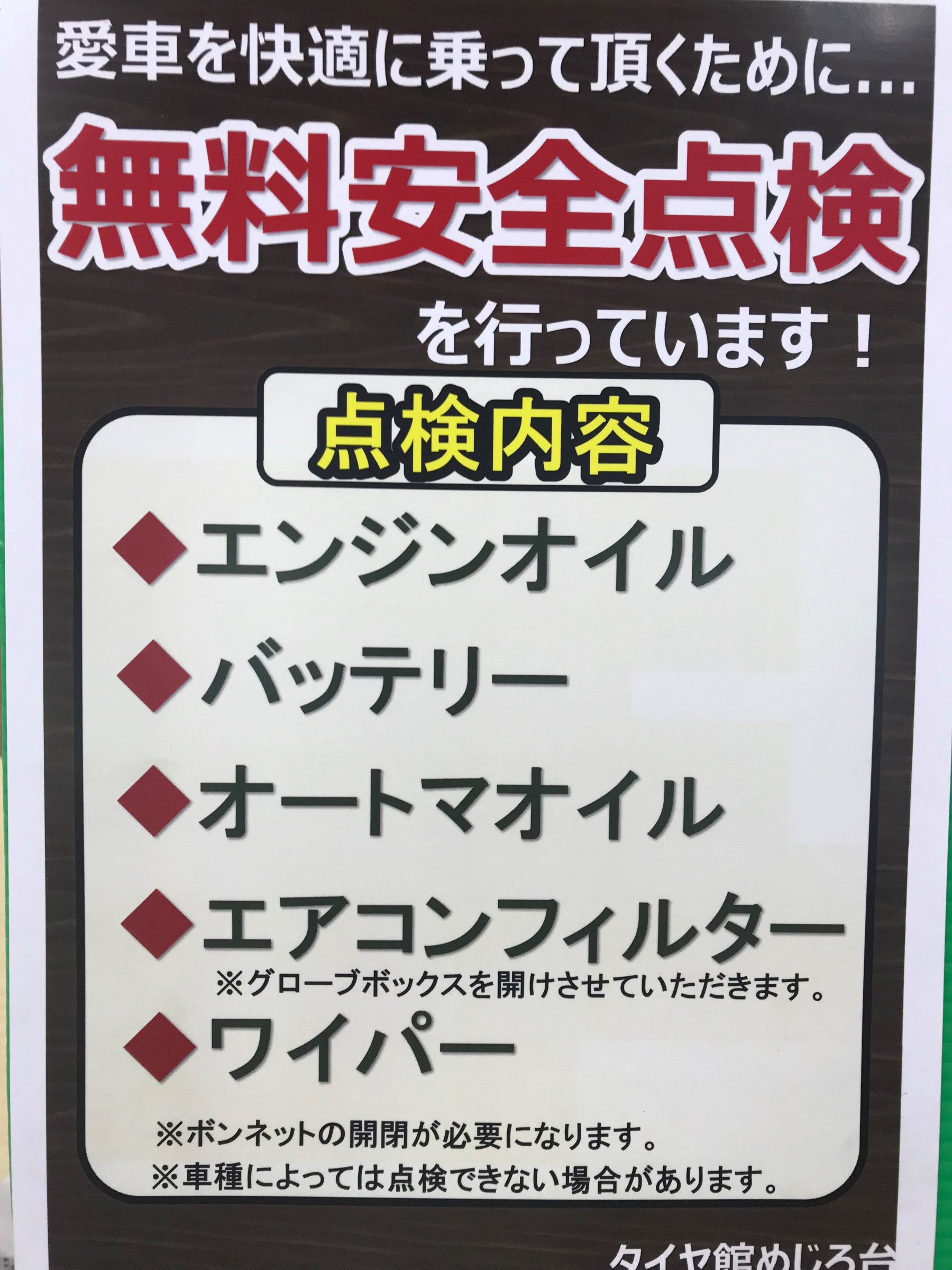 バッテリやエンジンオイルなどの点検を無料で行っています。