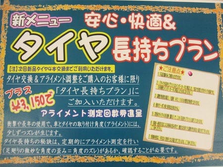 タイヤを4本交換して頂いてアライメント調整したお客様限定で
