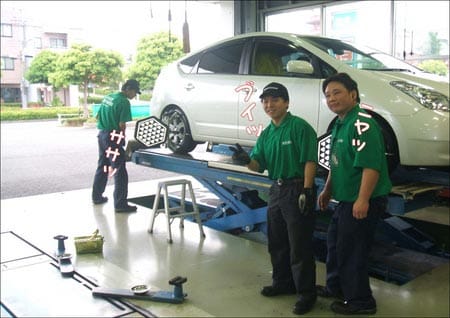 最近CMで話題のアライメント調整(車の骨盤矯正)の作業風景です。