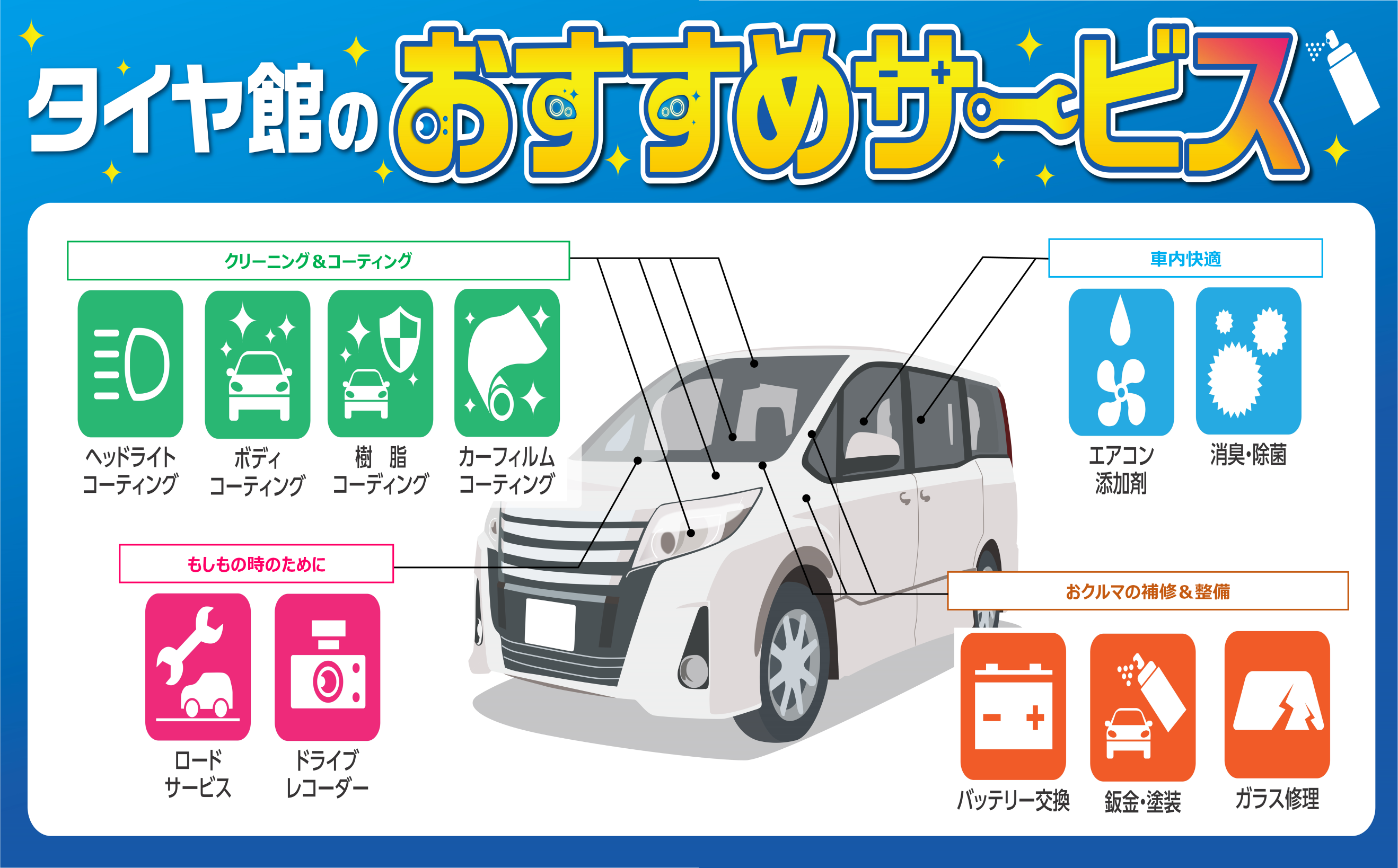 タイヤやメンテナンス商品の