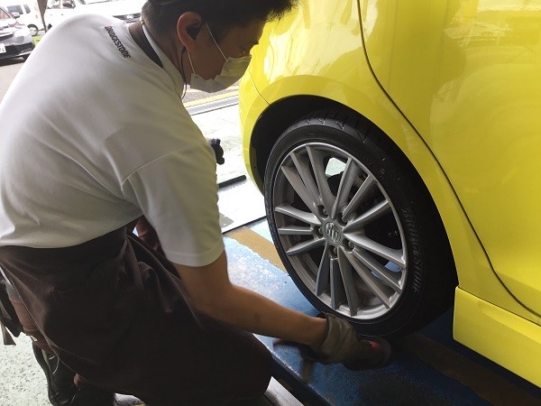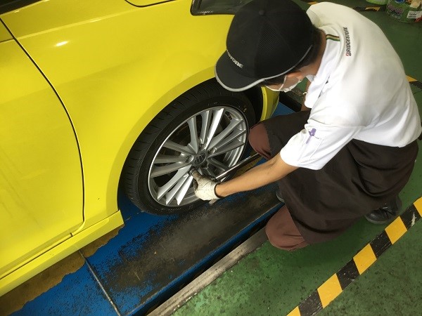 100km点検とは新品タイヤに交換して慣らし走行が終わったところで実施しているタイヤ館のアフターメンテナンスです。タイヤが馴染む過程で空気圧が下がってしまったりホイールを止めているナットの締付具合にバラツキが出ることがあります。100km位走行後を目安に実施していることから100km点検と呼んでいます。