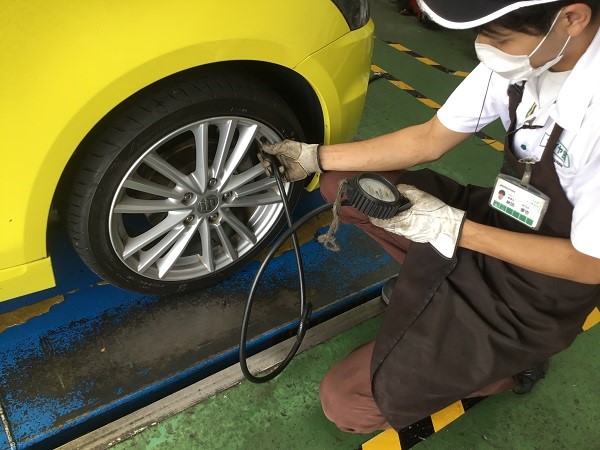 タイヤ館みどりでは100km点検だけでなく日常の空気圧点検やタイヤ点検も無料で行っています。タイヤで気になることがございましたら是非当店までお気軽にご相談ください。