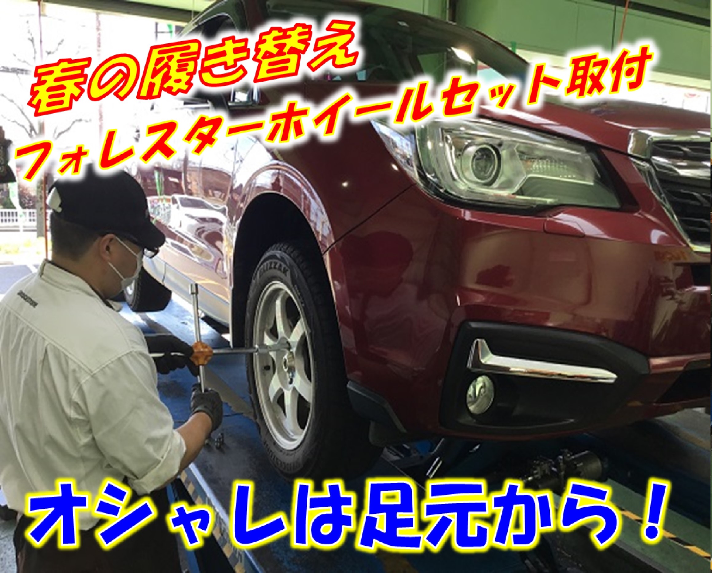 《スバル》《フォレスター》の《ホイールセット取付》です!
