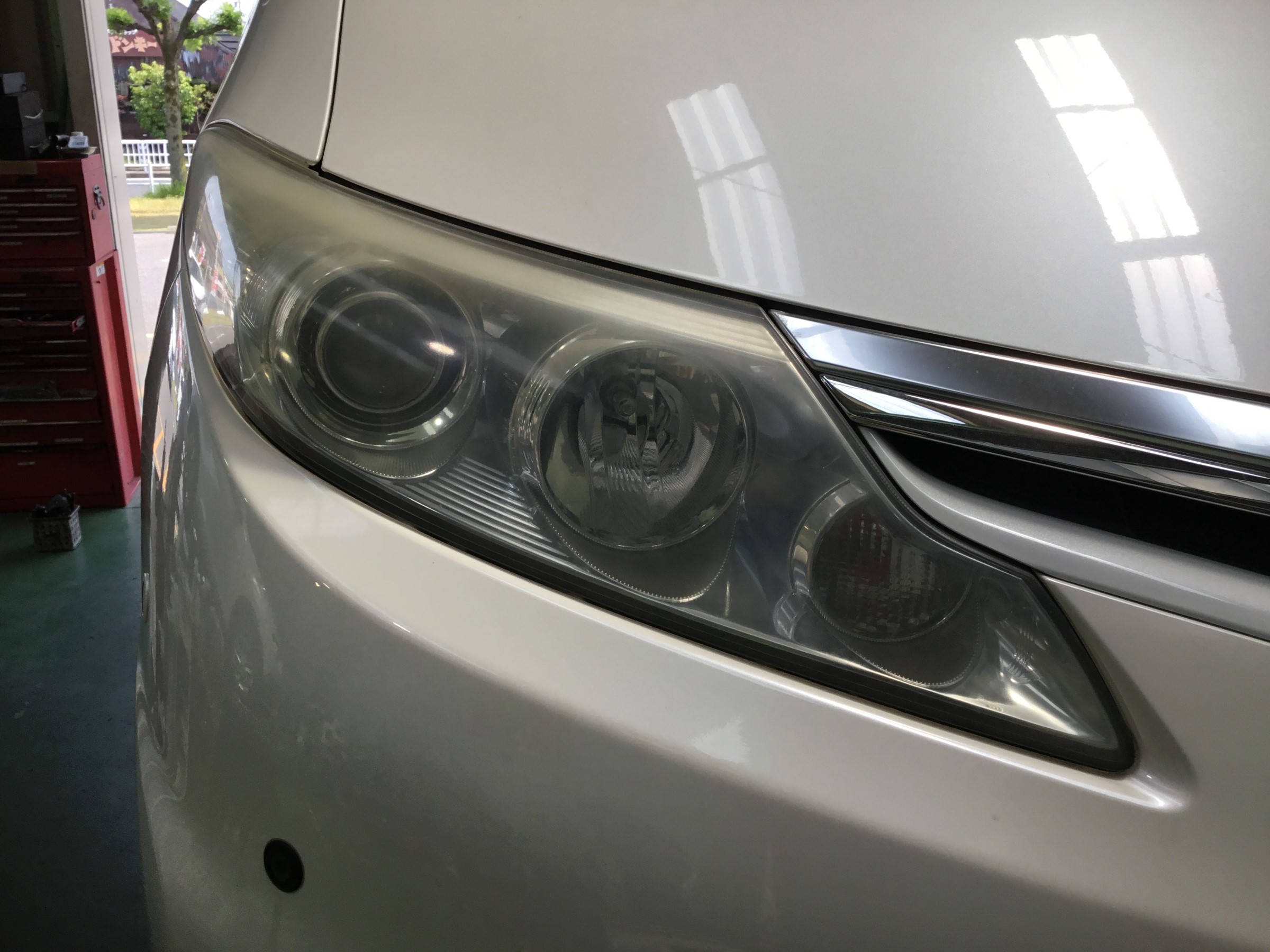 タイヤ館みどり店ではヘッドライトレンズがくすみにくくなるコーティング作業がおこなえます。軽いくすみならコーティングの過程で取り除けます。