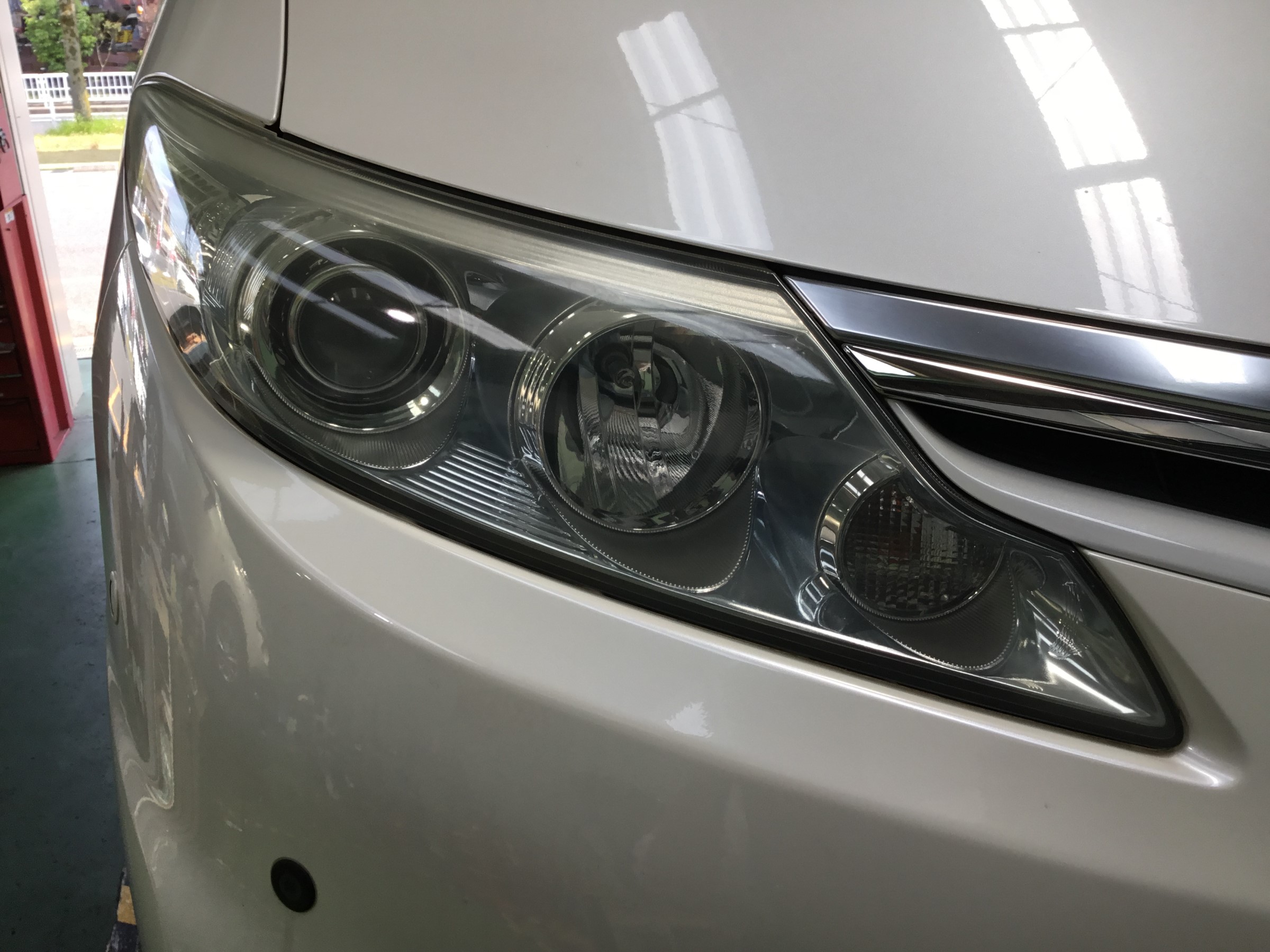 今日は当店イチオシの作業「ヘッドライトコーティング」
