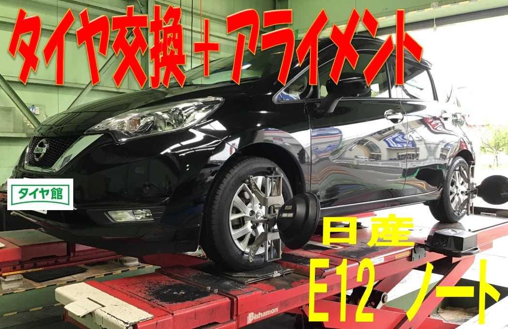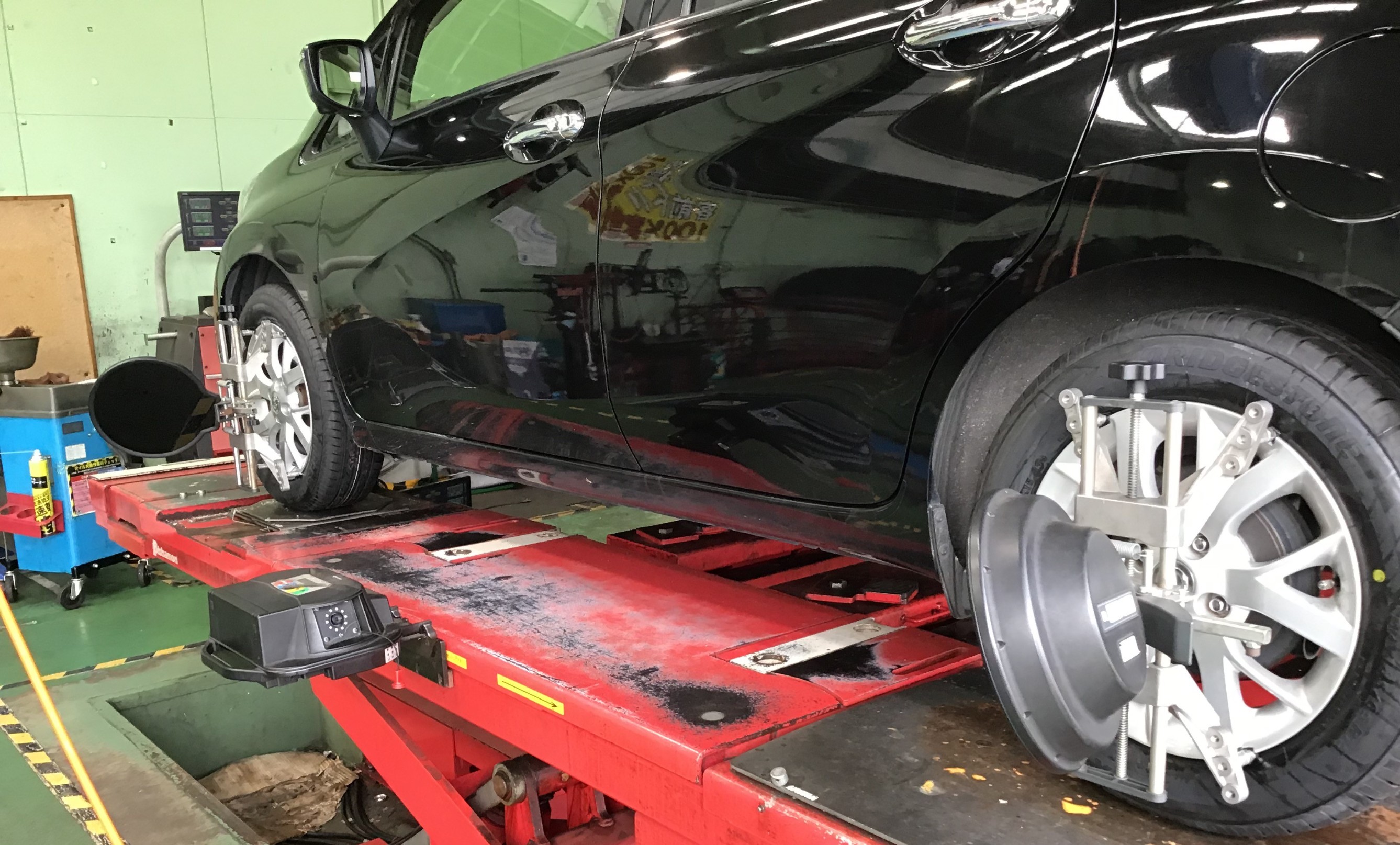 初めてのタイヤ交換となるノートのタイヤ交換+アライメント作業を実施させていただきました!
