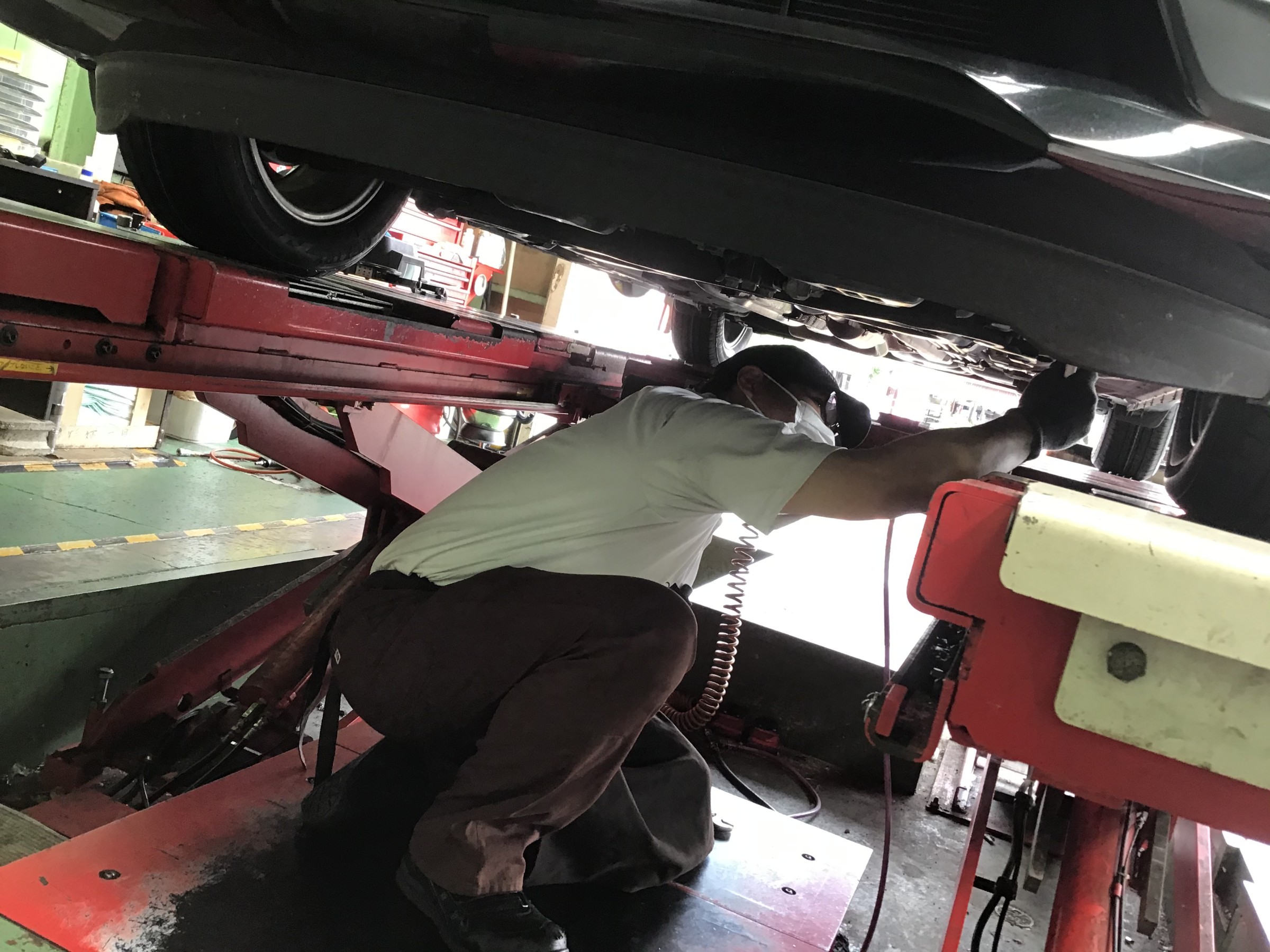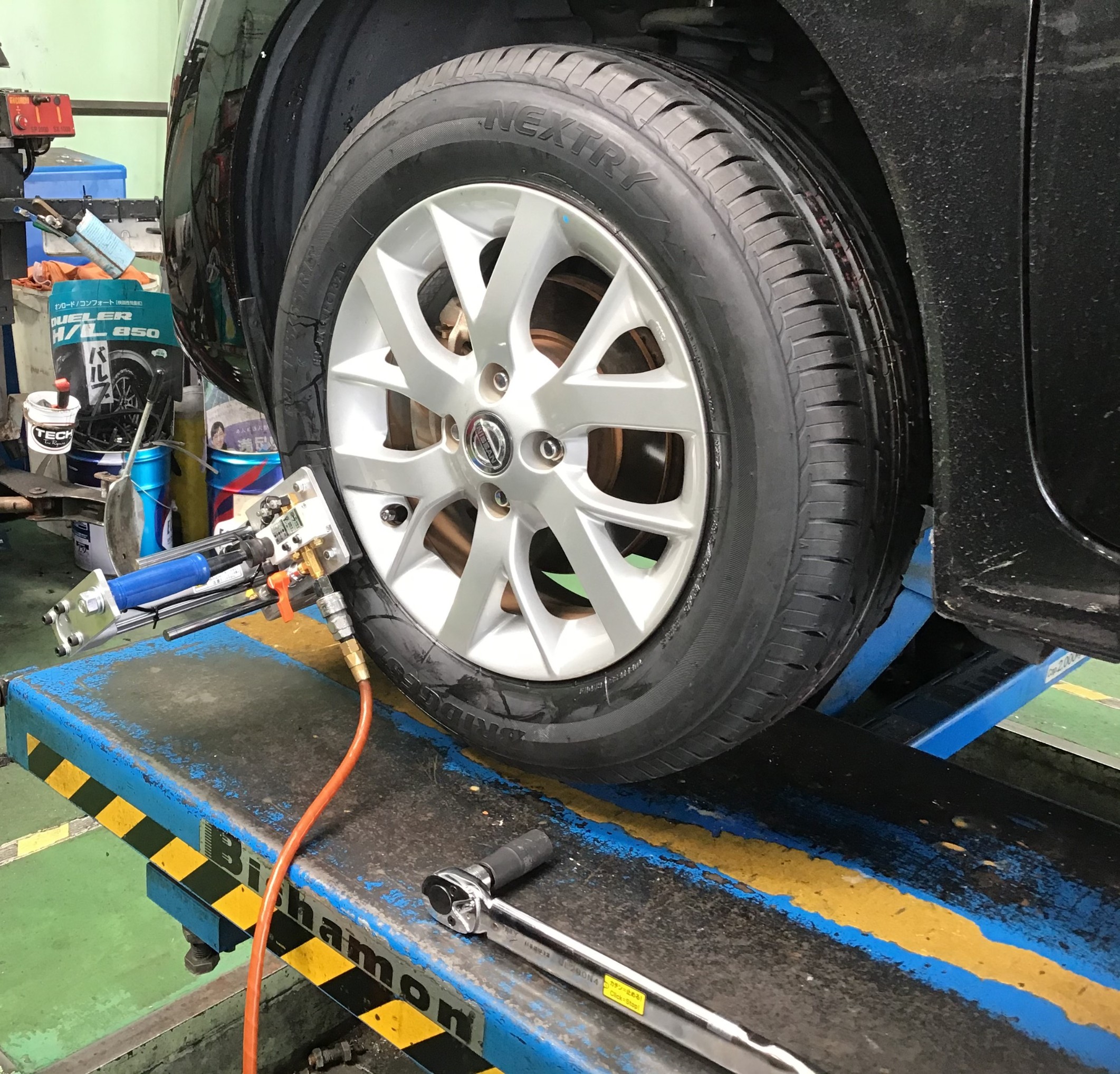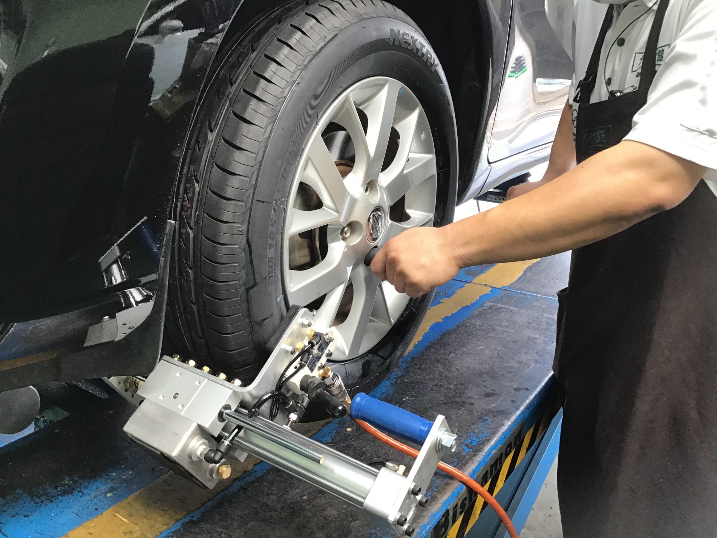 タイヤの寿命を延ばしたり、走行安定向上させるアライメント作業も同時に実施しました!