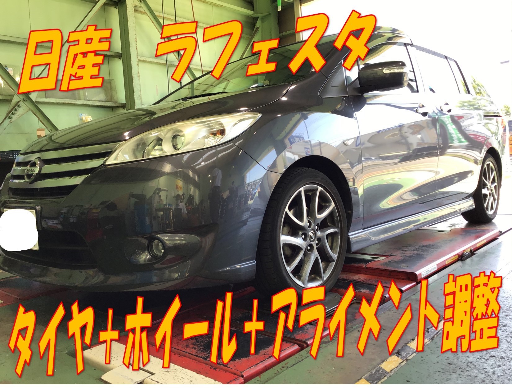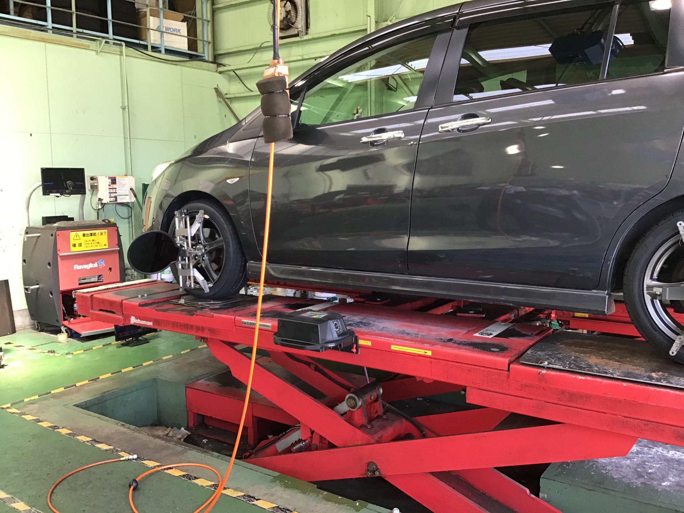 本日の作業:ラフェスタのタイヤホイールセット取り付け&アライメント調整作業