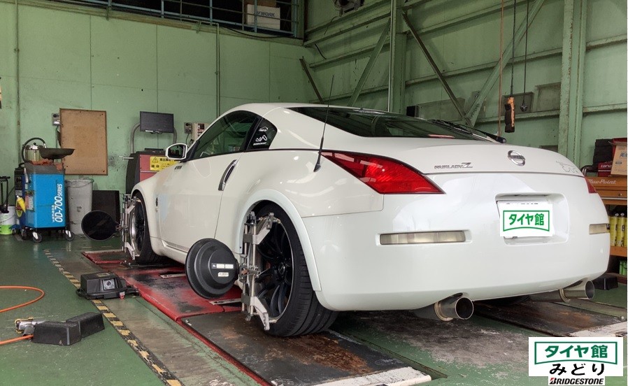 Z33はフロントのトウ、リアのトウ、リアのキャンバーがそれぞれ左右調節可能なので計6か所調整です。