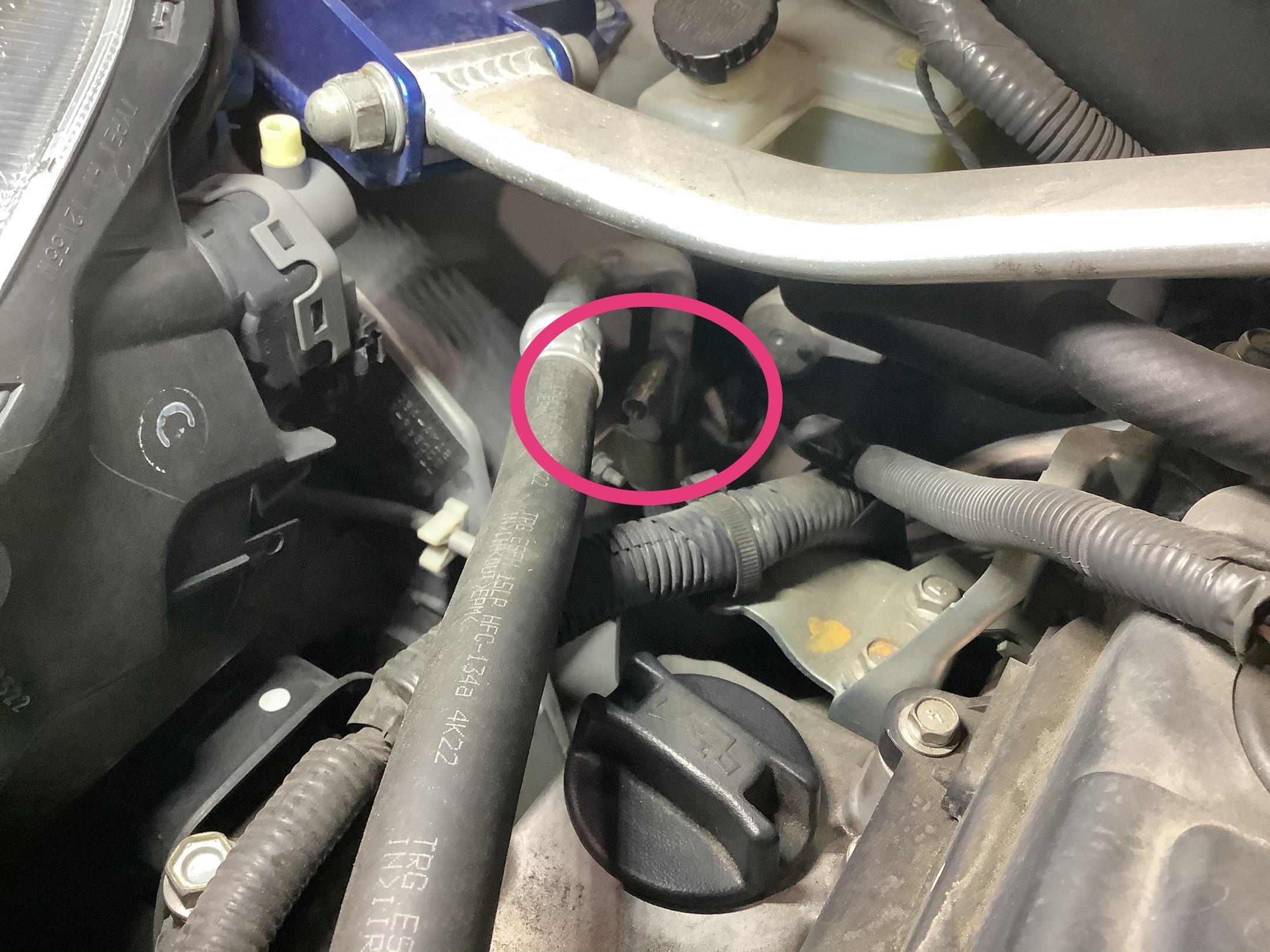 エアコンの配管の【L】と書いてあるキャップを外します。