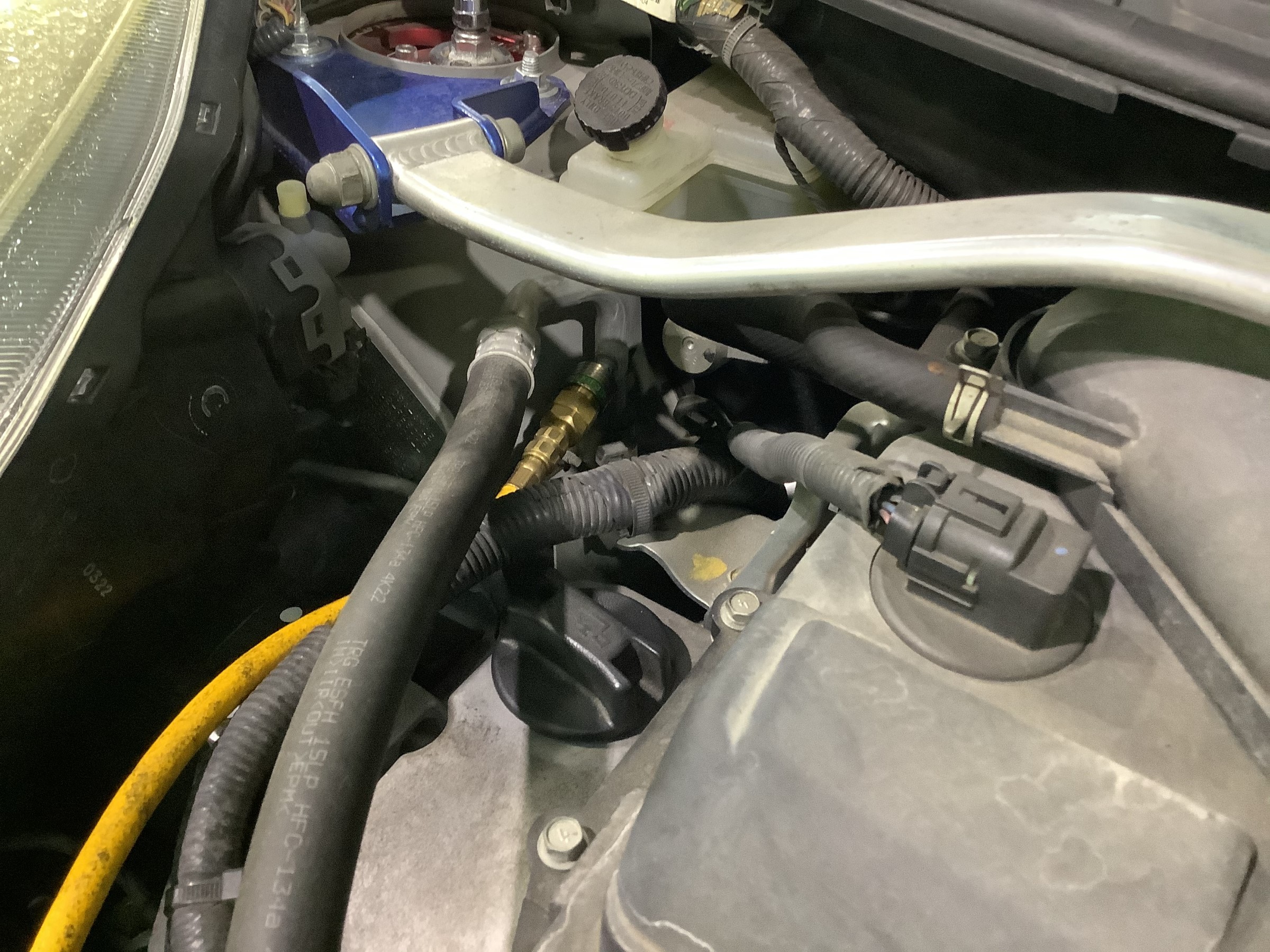 ホースの先にパワーエアコンプラスをとりつけて、注入していきます。