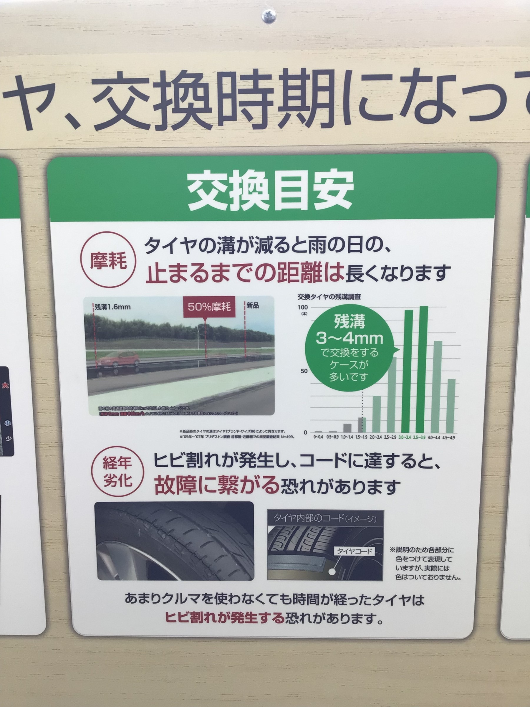 雨の日の制動距離が伸びてくる残溝量ですね。