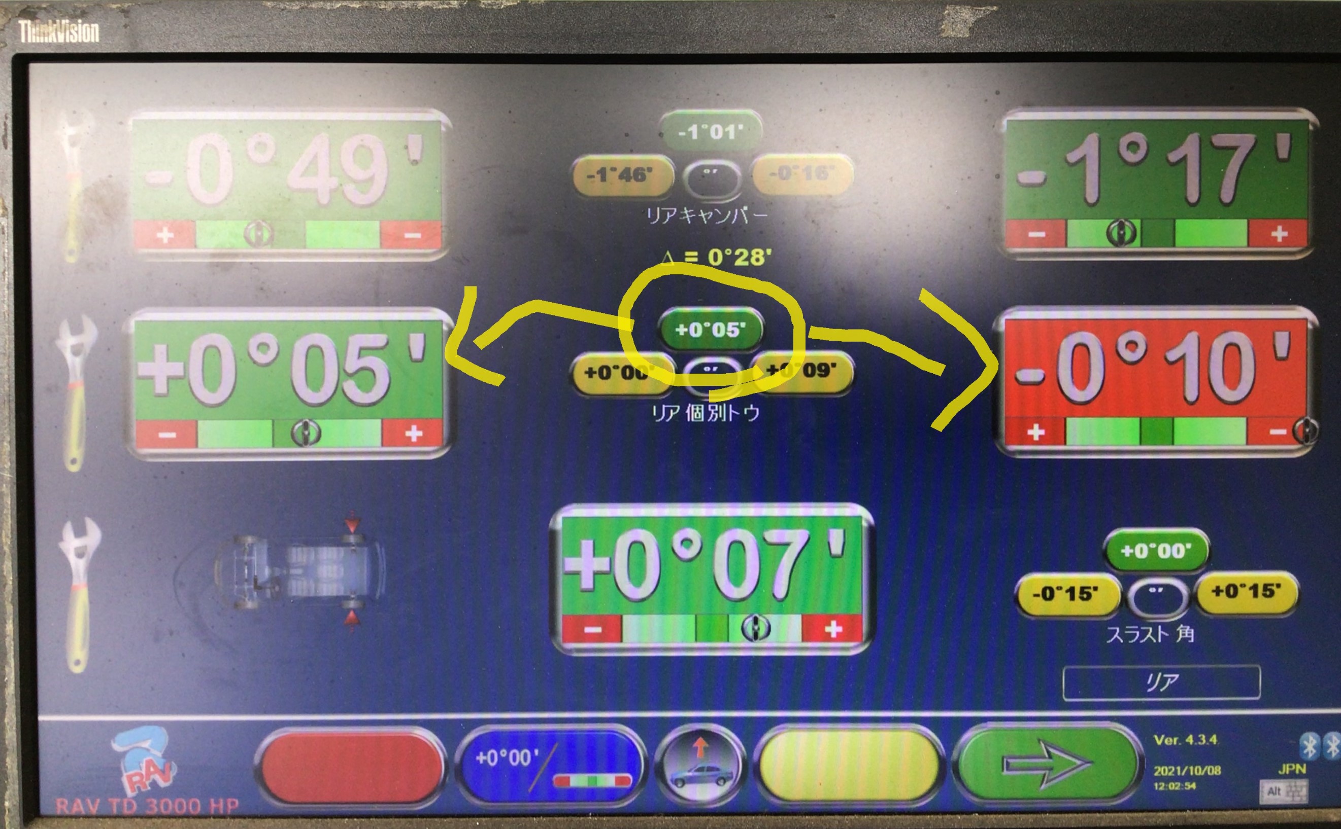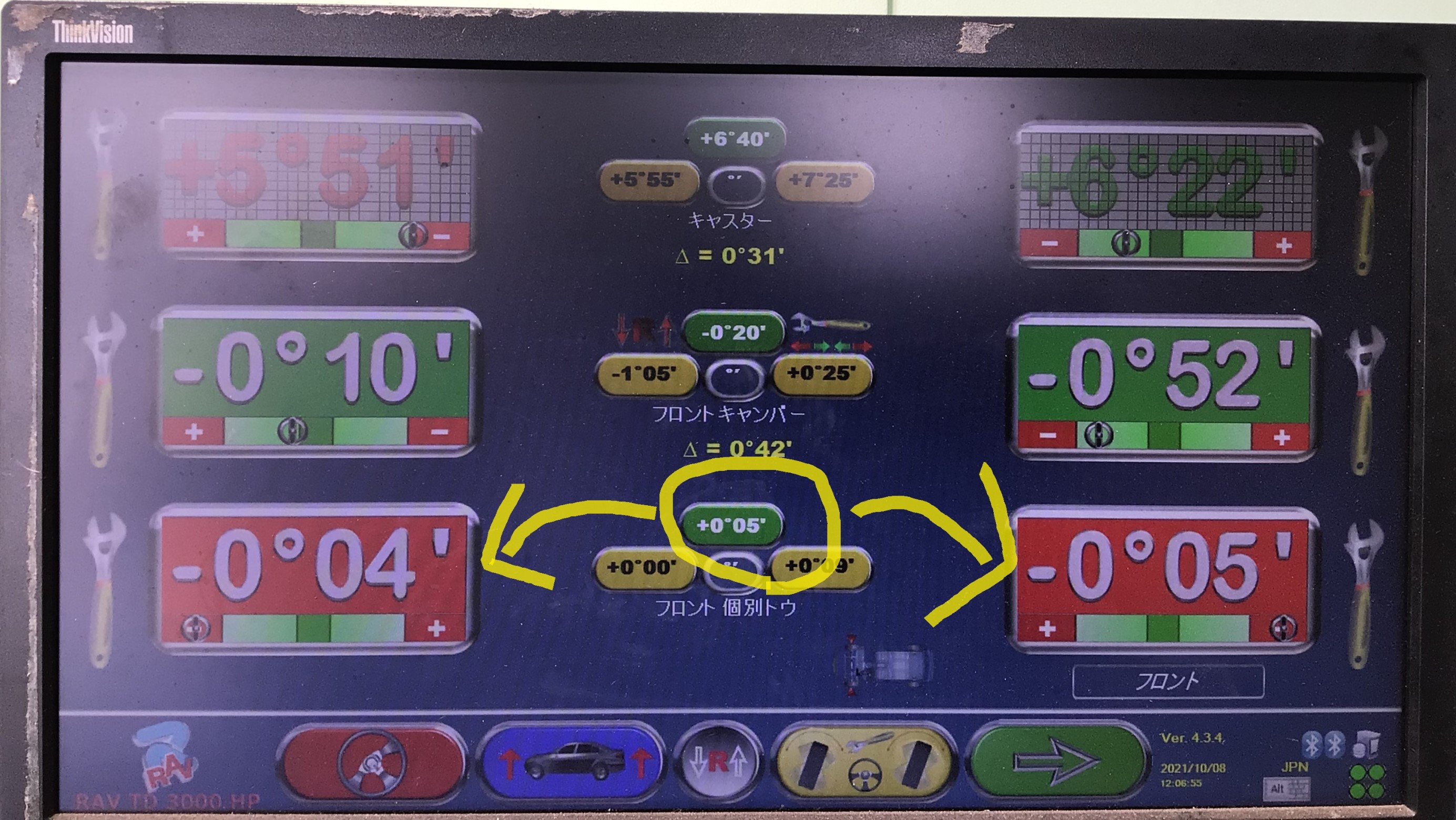 黄色部分が今回調節した部分で+0°05になりました!!!!