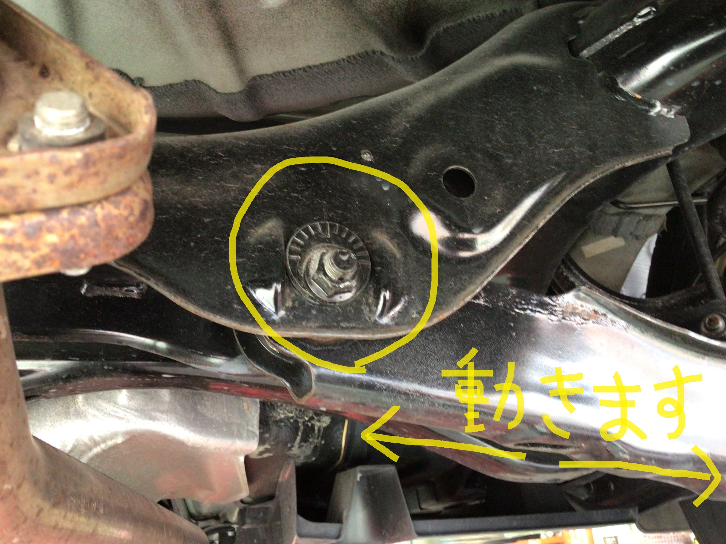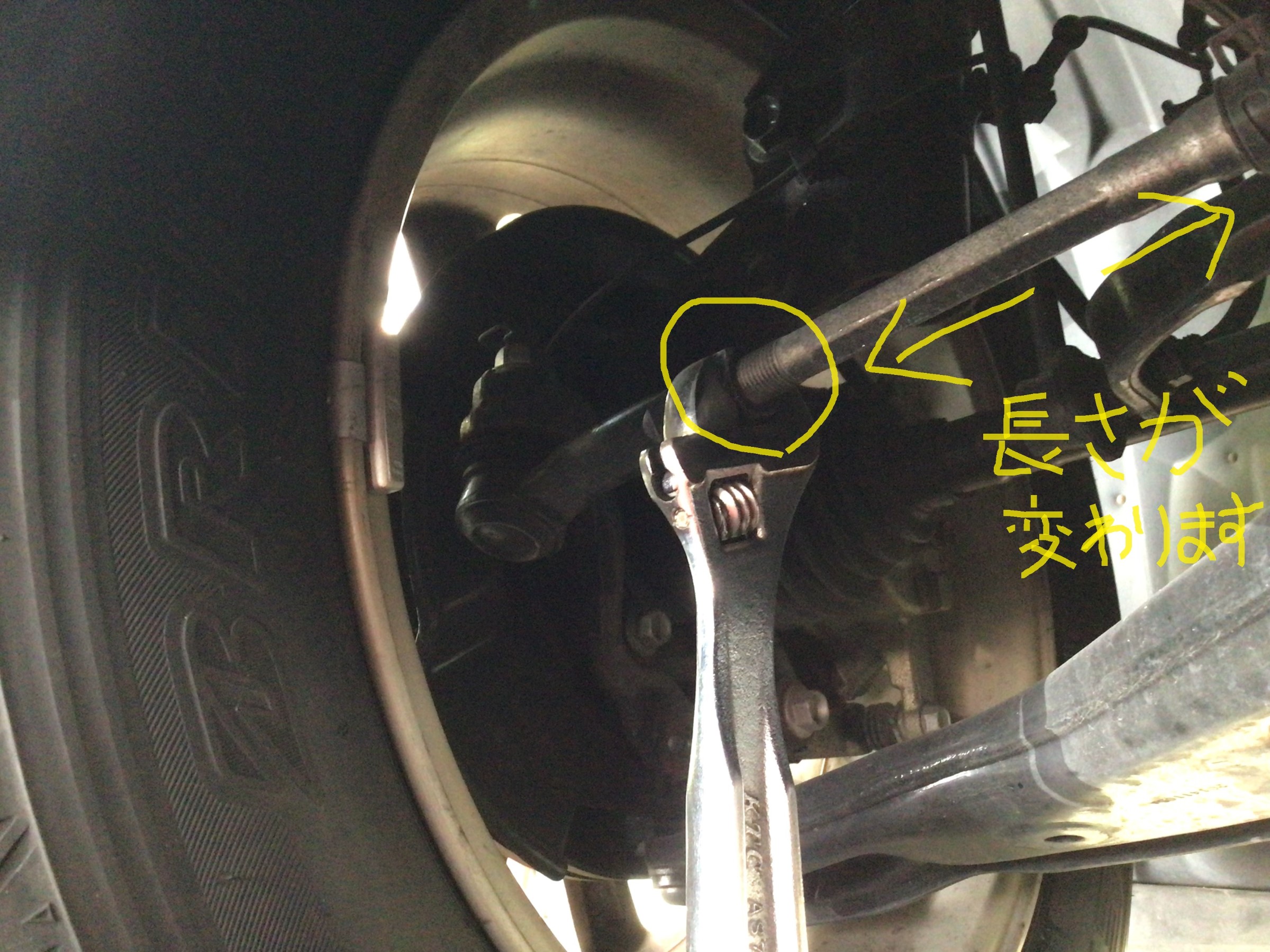 黄色丸の部分のナットを緩めて、棒の長さを調節することでタイヤの角度を調節していきます。