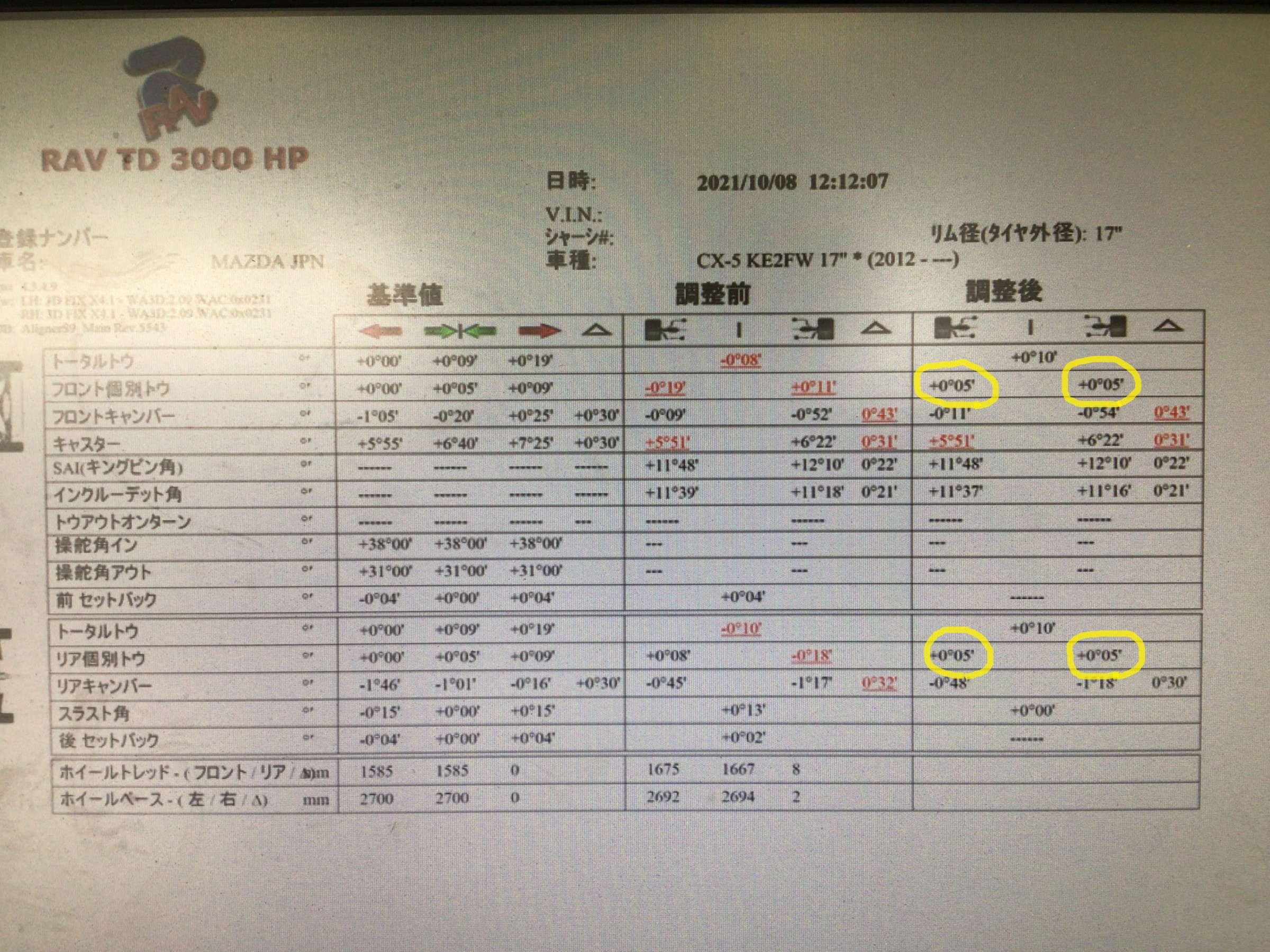 黄丸がCX-5の正しい値で、+0°05となっております。