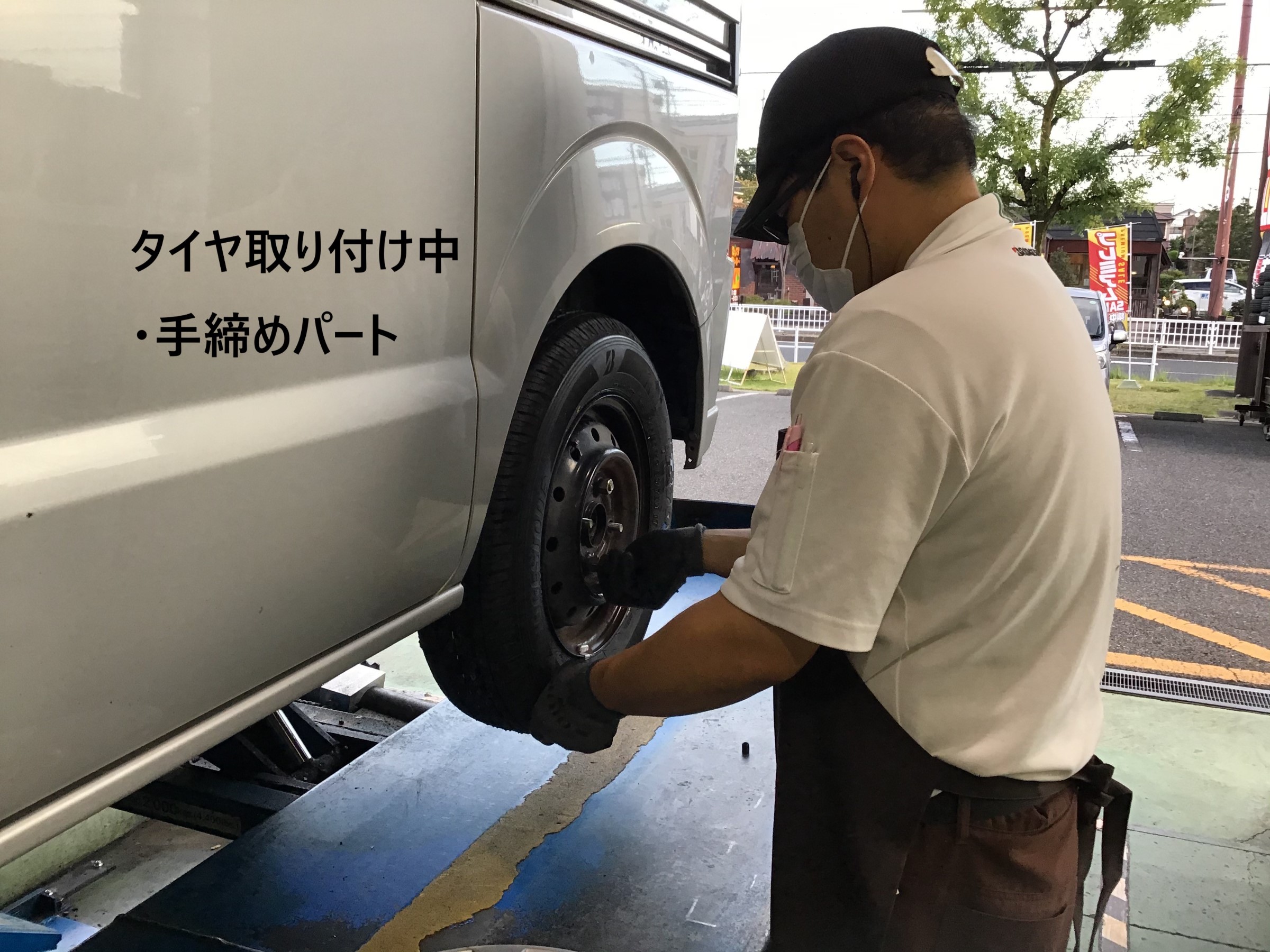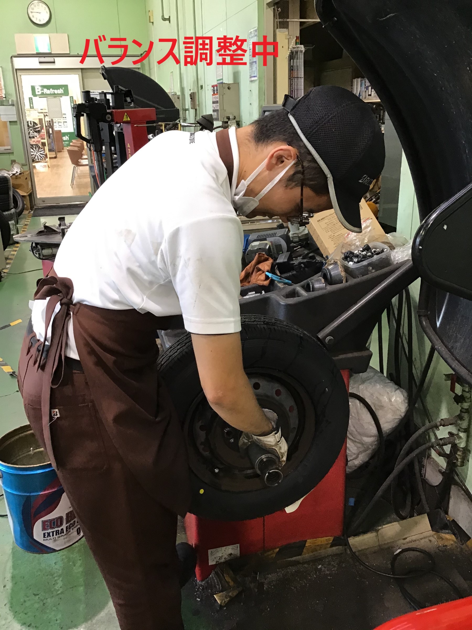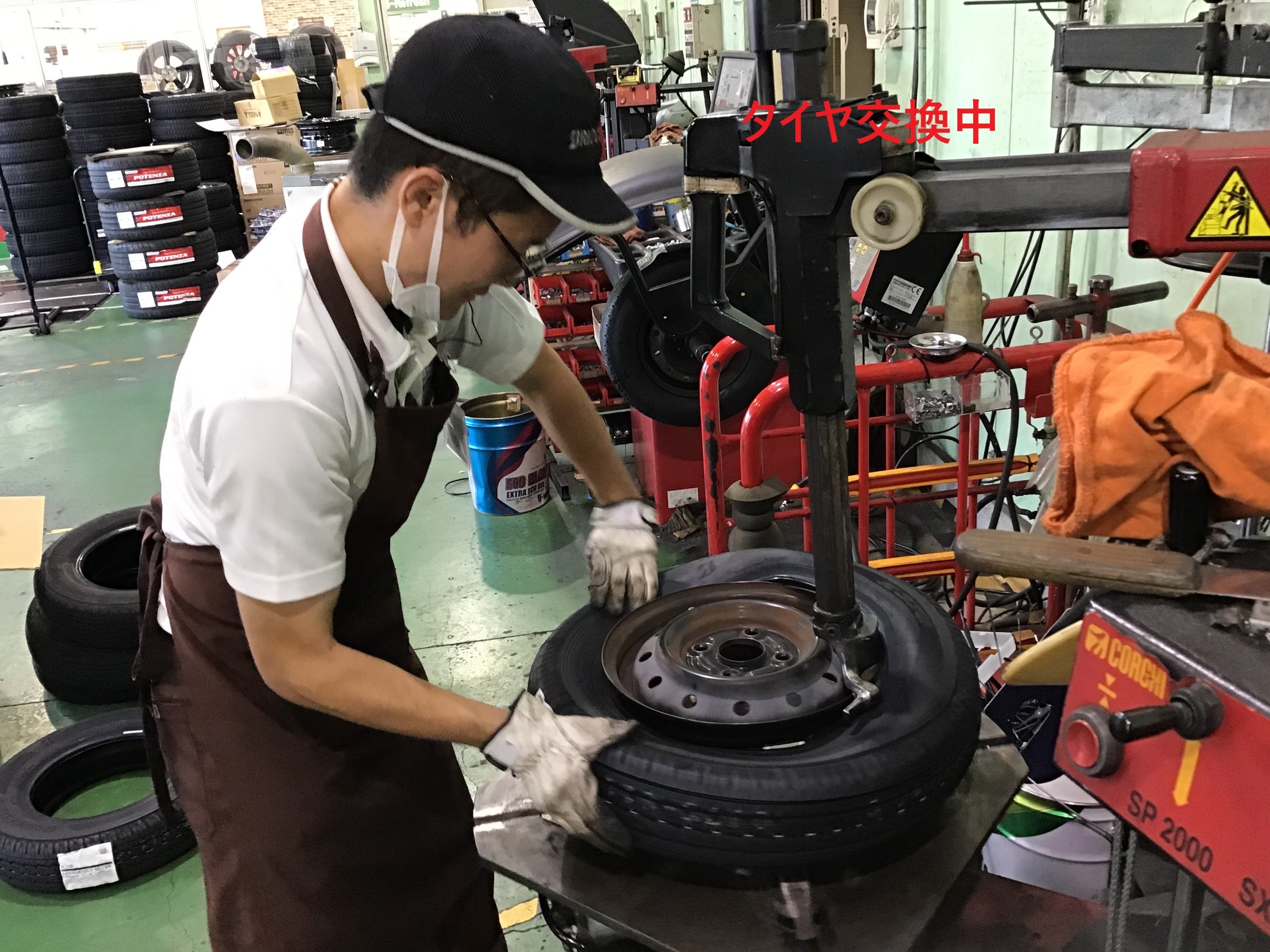 当店のピットの鬼”池尻”が精魂込めてタイヤ交換しております!
