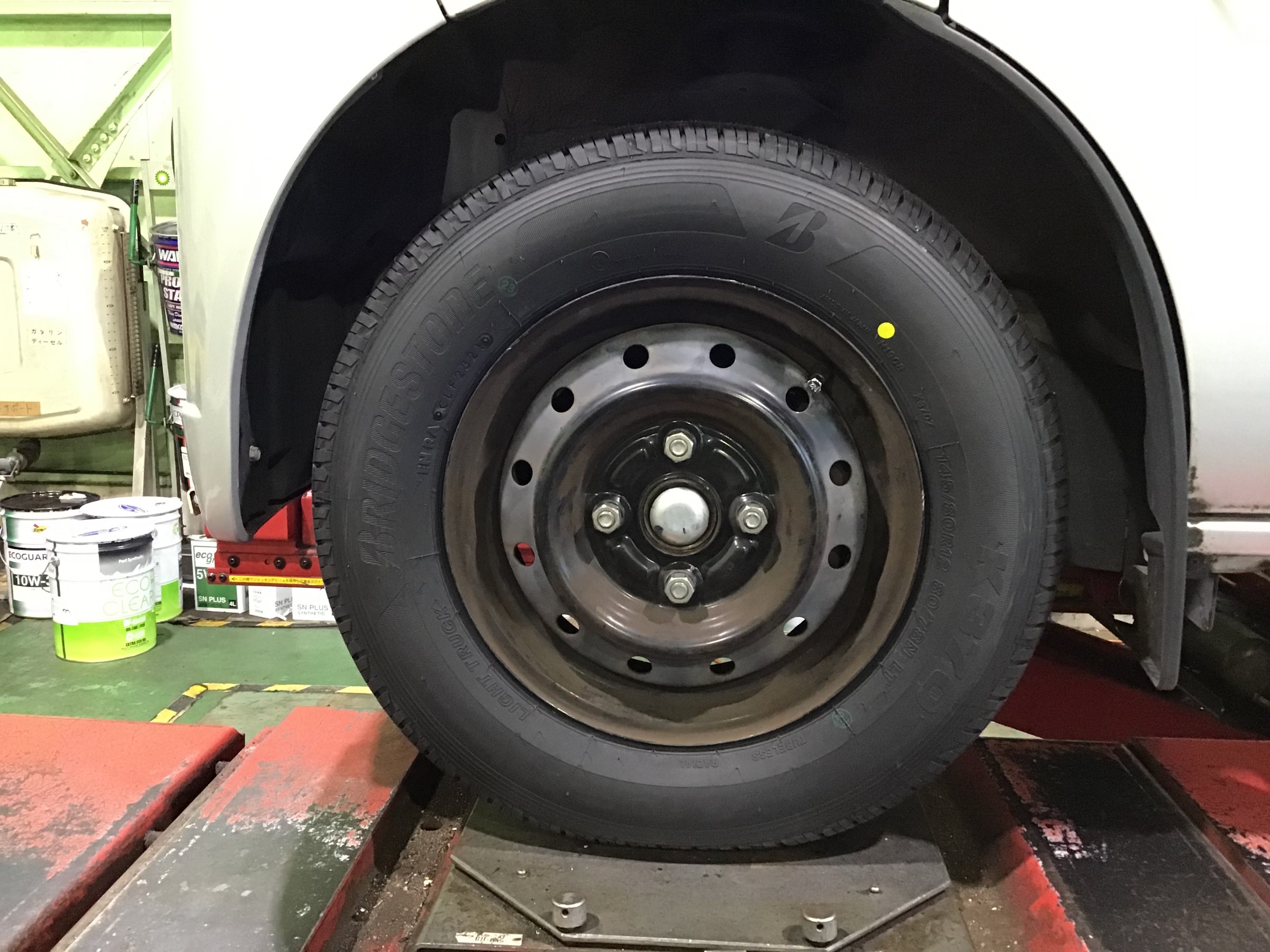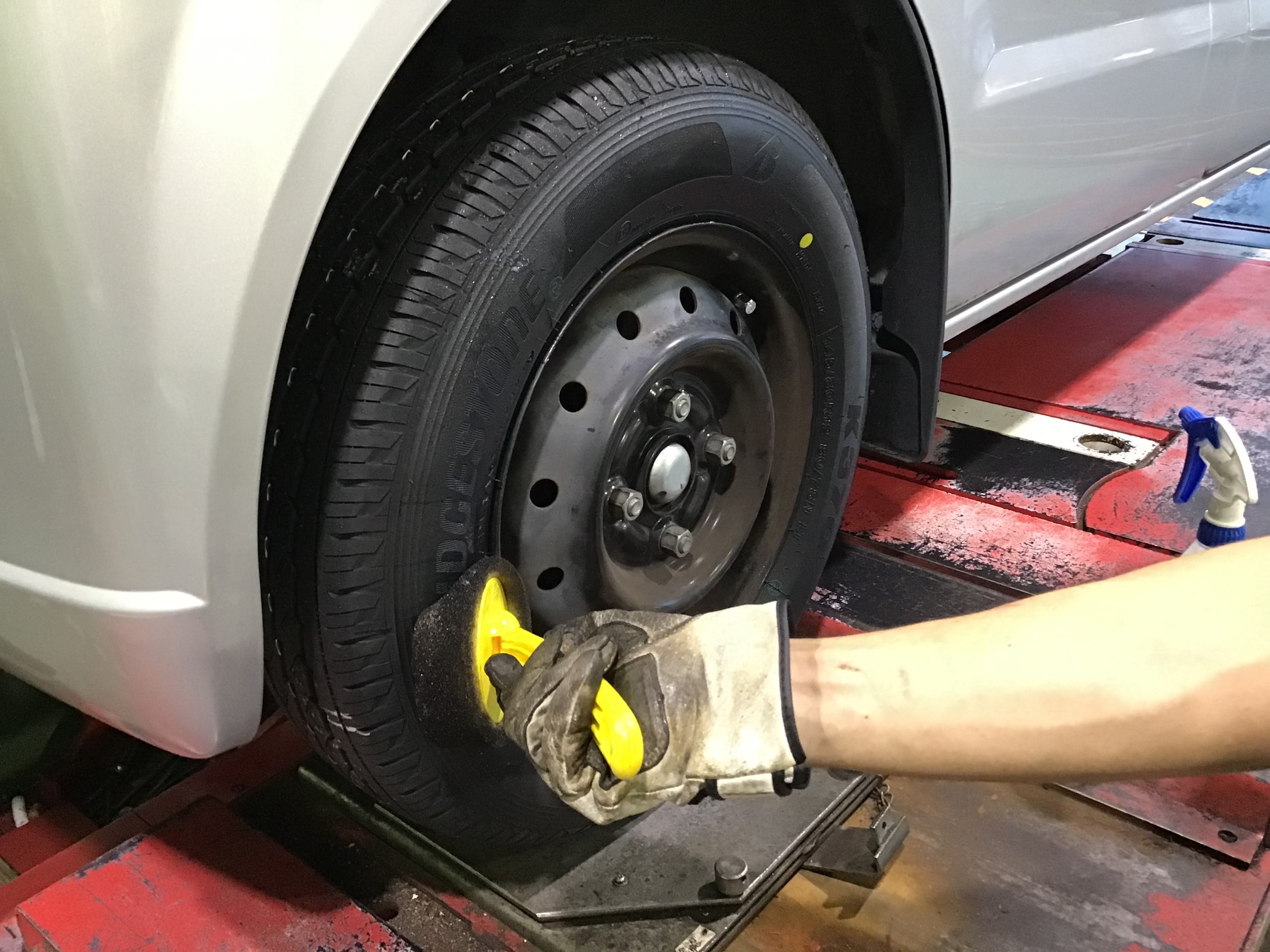 本日のお取り付け! エブリイのタイヤ交換・アライメント作業
