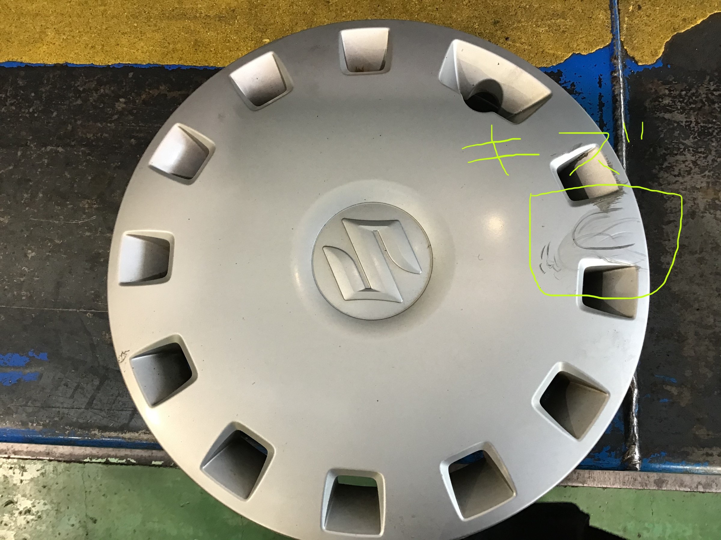実は最初のタイヤチェックの際に、ホイールカバーにキズを発見
