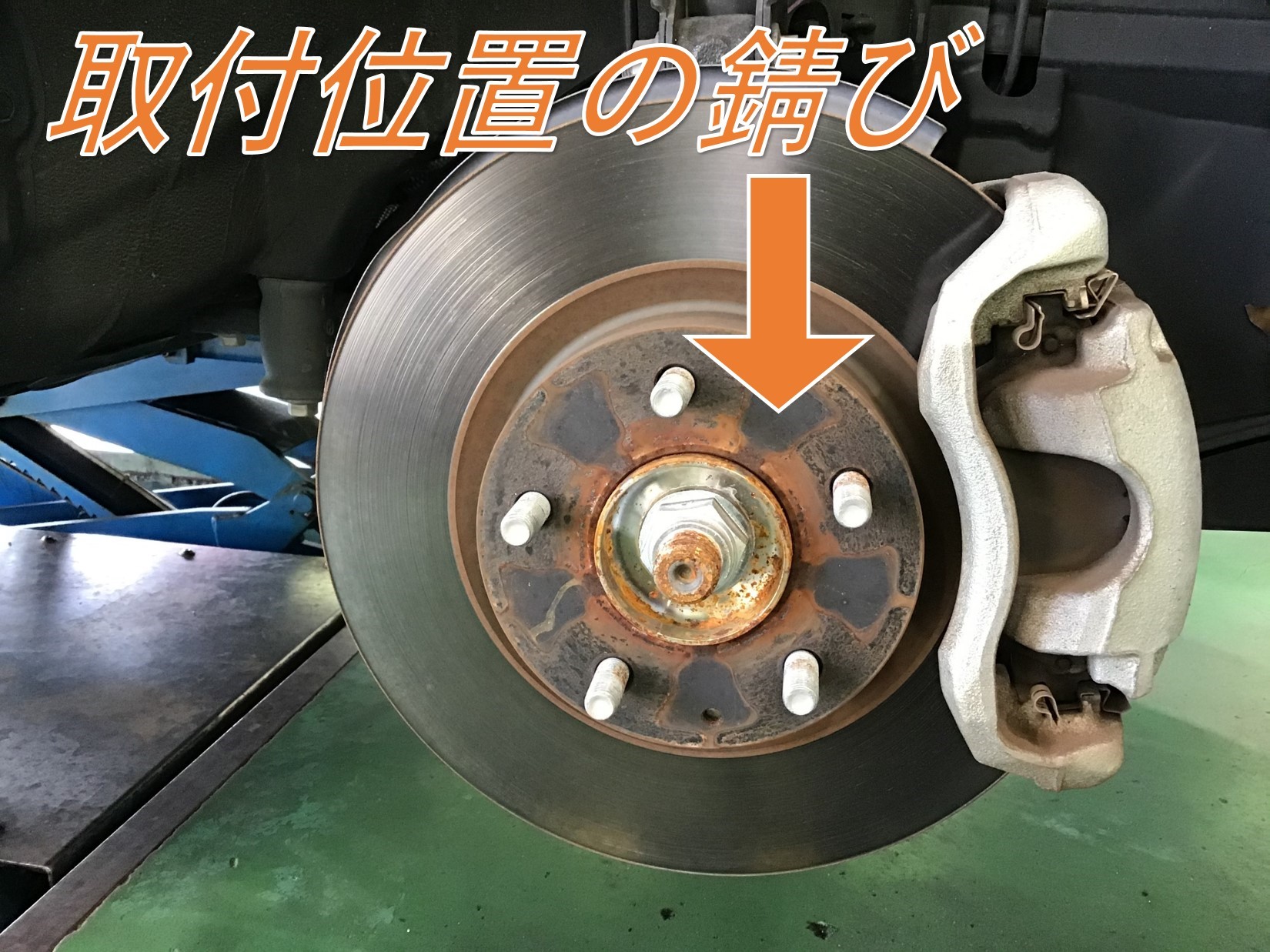 タイヤを外し、出てきた取付位置(ハブ)の錆び