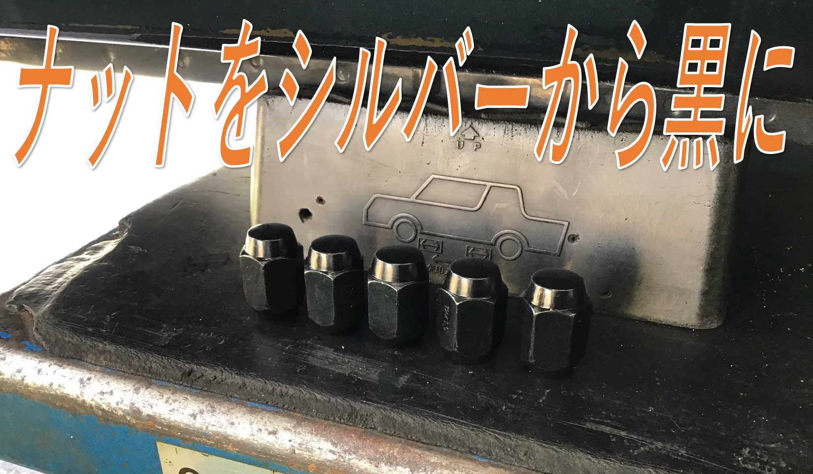 そしてさらに、ナットを純正のシルバーから黒色に交換します!