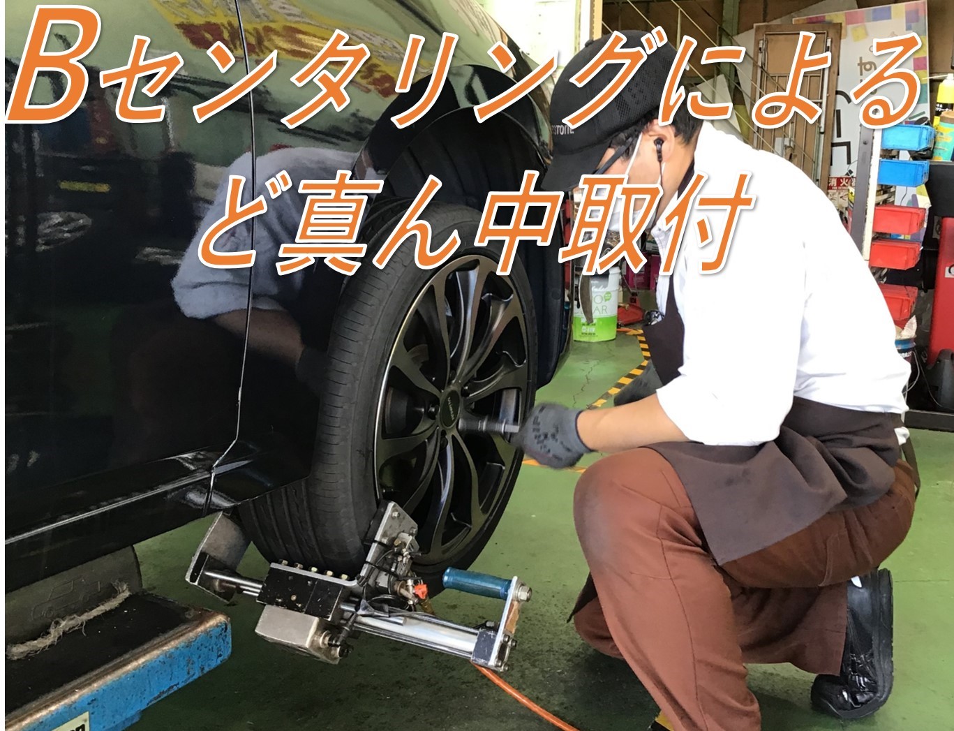 そしてセンタリングマシーンを使ってのタイヤど真ん中取付と、