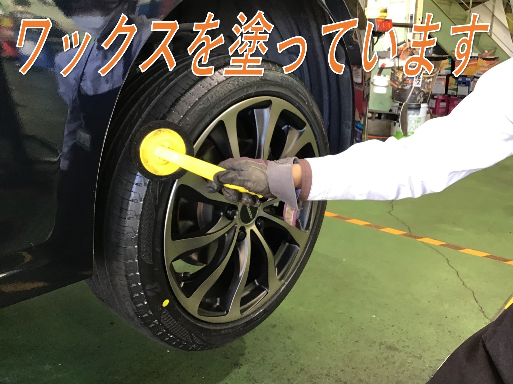 最後の仕上げはタイヤにワックスを塗り、アルミホイールをキレイに!