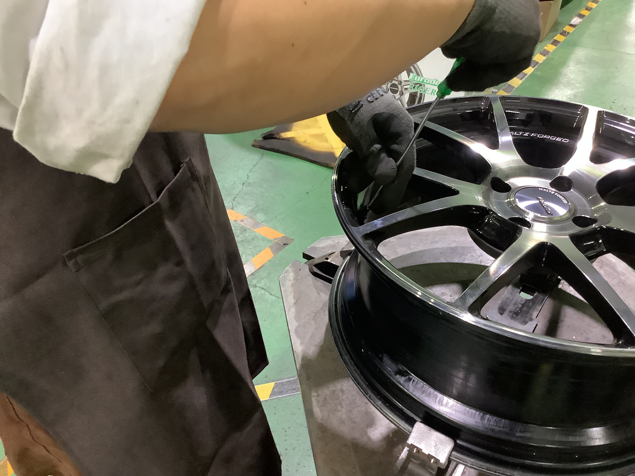 角度調整も終わり、仕上げにタイヤワックスを塗り、