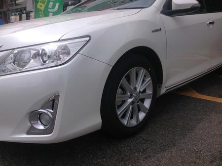 本日の作業は最近増えてきております。トヨタのカムリHVのタイヤ交換とアライメント