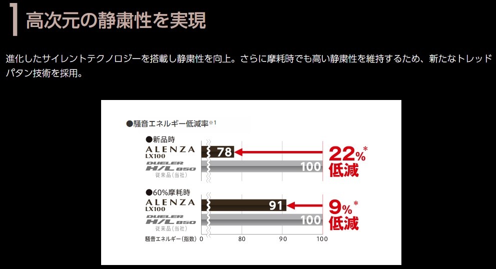 ALENZAシリーズのLX100はタイヤパターンでも解る通り、