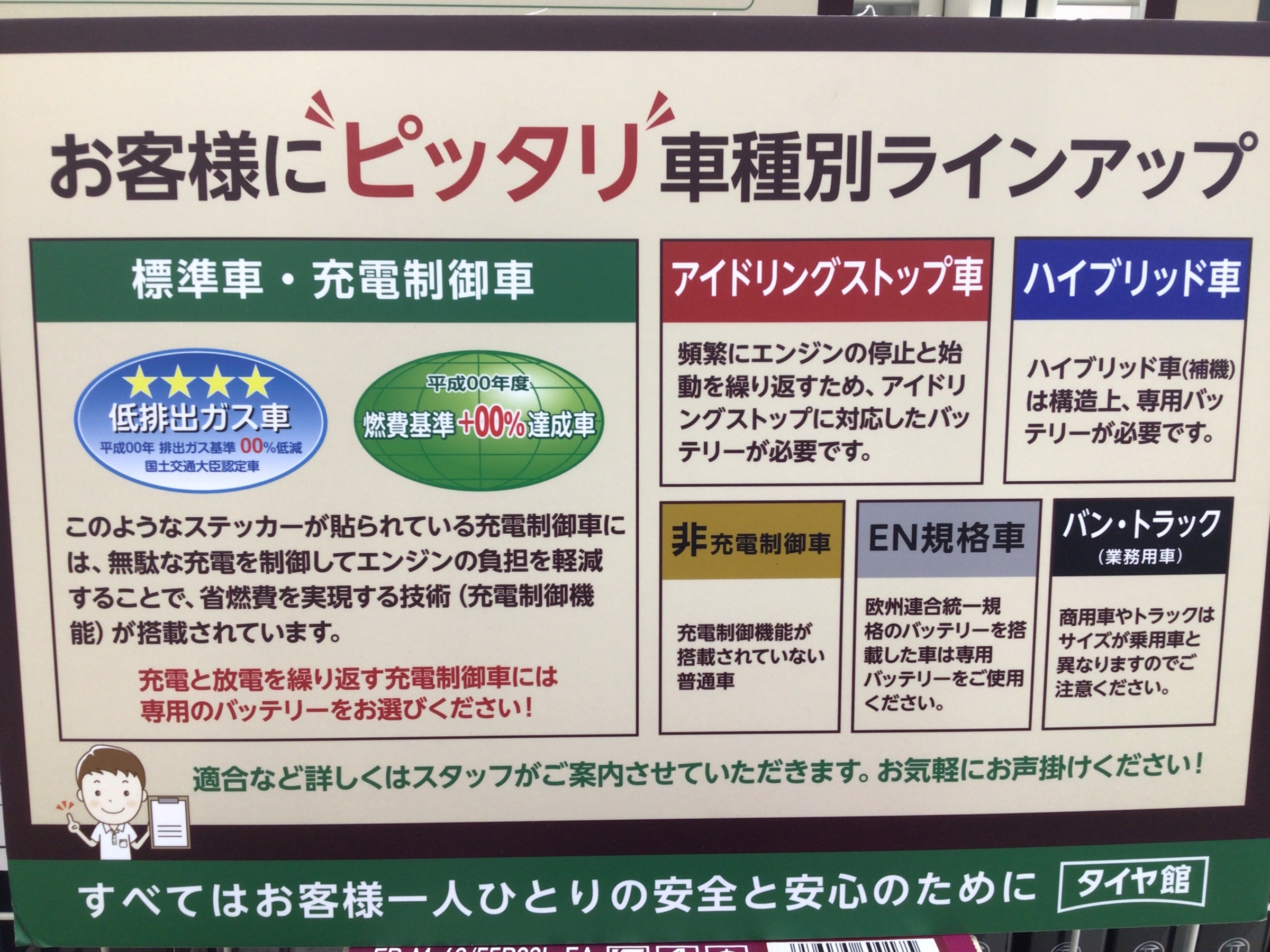 バッテリー交換ならどうぞタイヤ館みどりをご利用下さい。