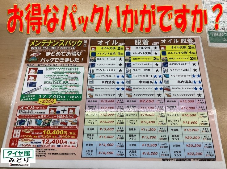 年に2回、オイル交換を当店でされる方はオイルパックがお得。