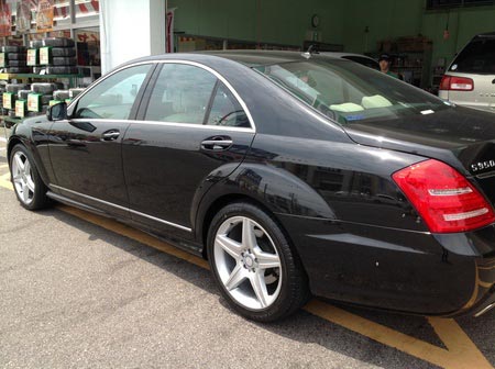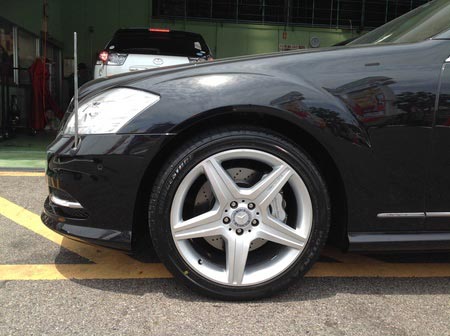 本日の作業はメルセデスベンツのSクラス(W221)のタイヤ交換と