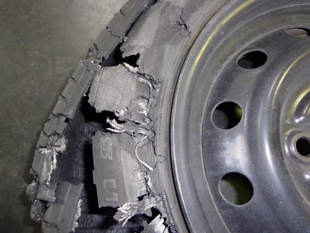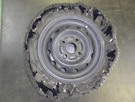 さて、写真はバーストしてしまったタイヤです(+_+)