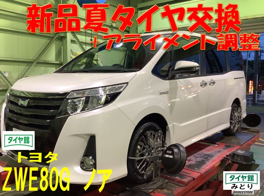 夏タイヤ交換+アライメント作業 トヨタ・ノア