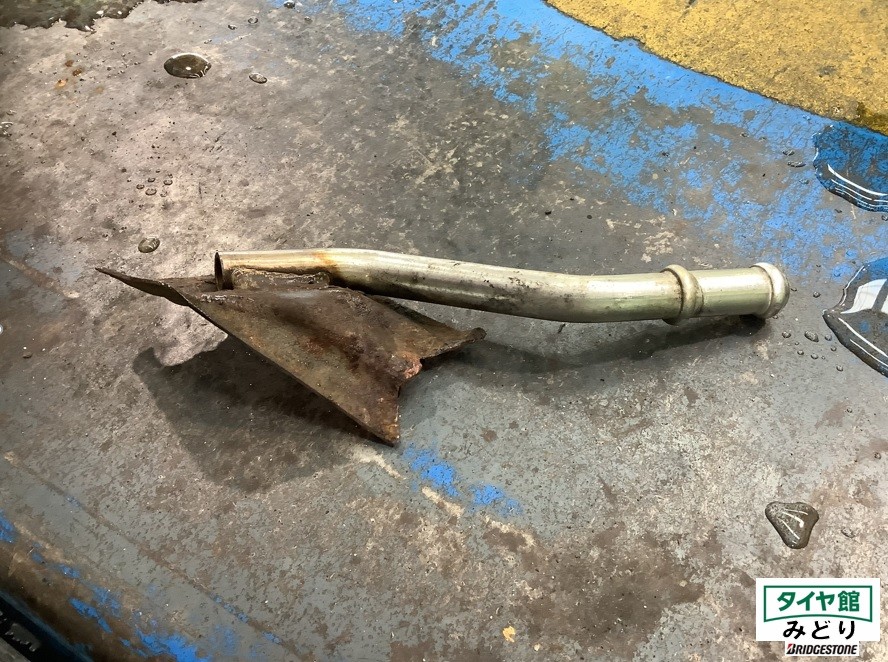 画像のようにマフラーステーが錆腐食で折れていました(◎_◎;)